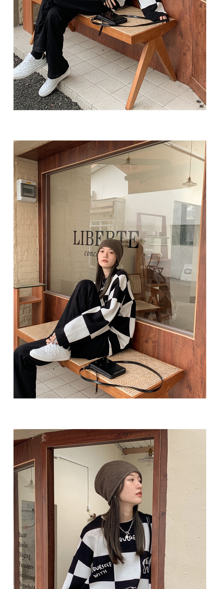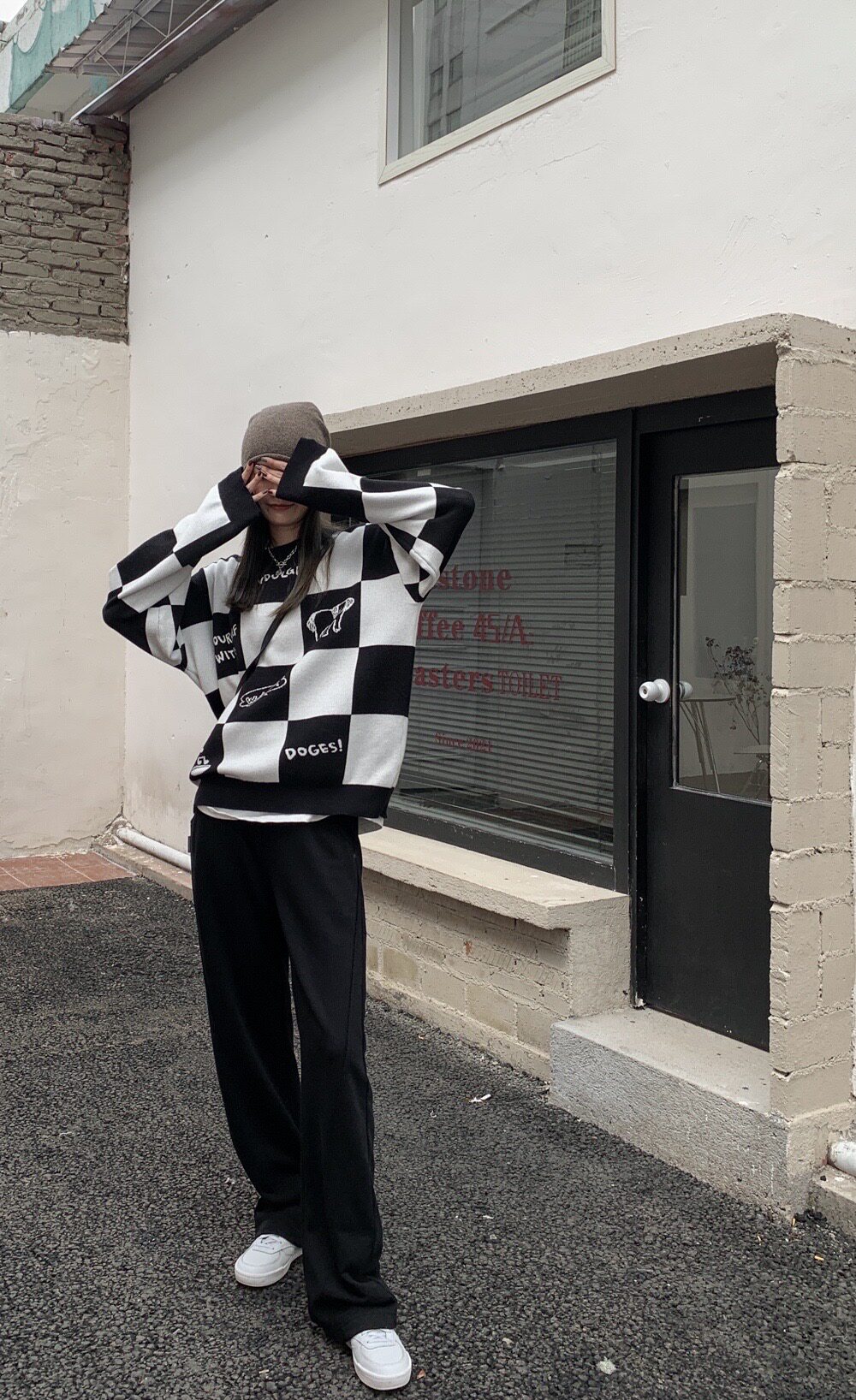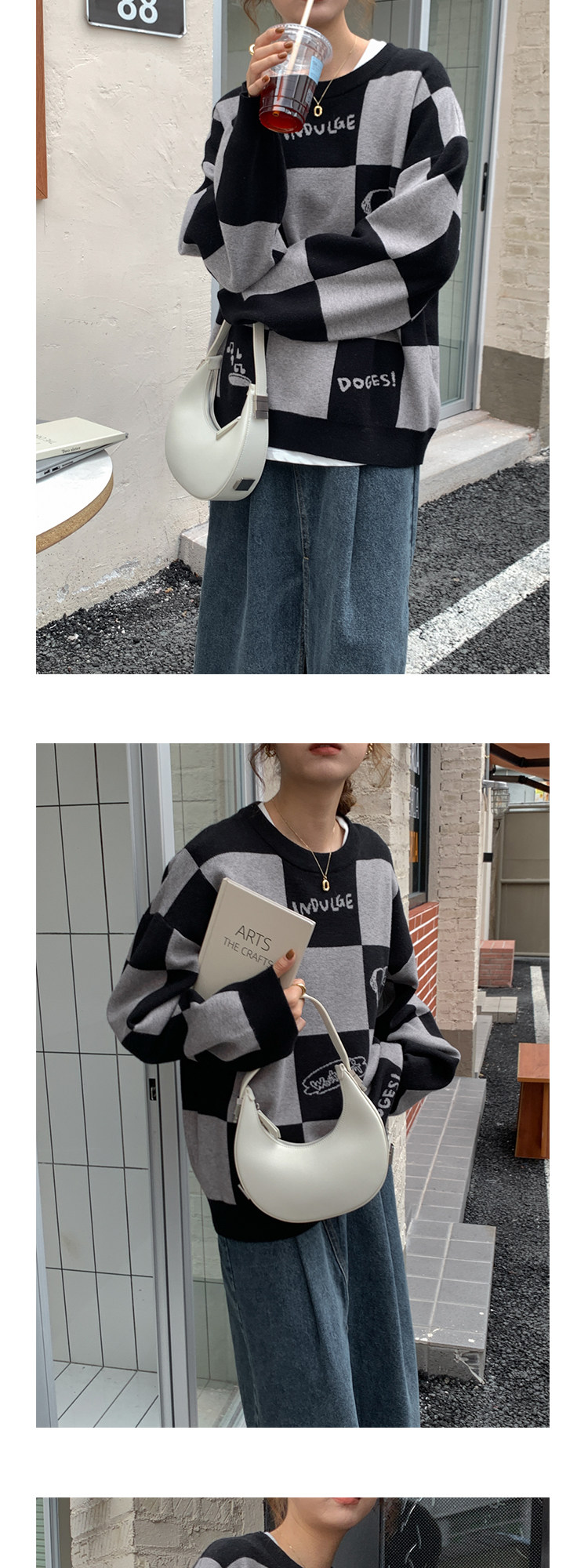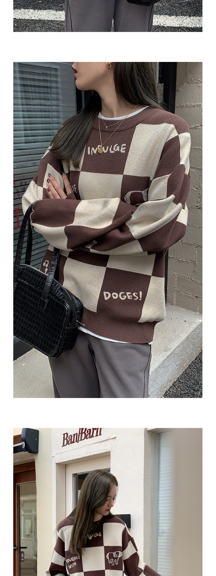 Шахматы, демисезонный свитер, длинная толстовка, в корейском стиле, средней длины