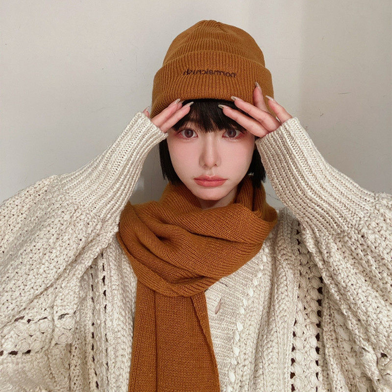 Шарф, демисезонная удерживающая тепло модная шапка, милый зимний шерстяной комплект, в корейском стиле
