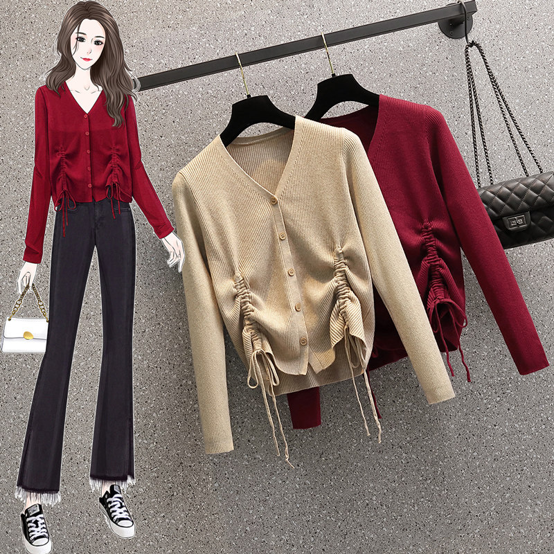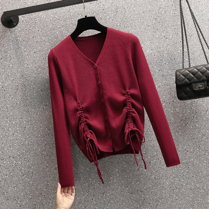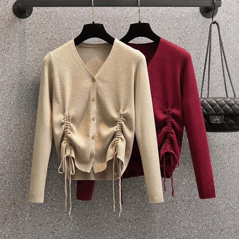 Демисезонный модный трикотажный свитер, большой размер, коллекция 2021, подходит для полных девушек, V-образный вырез, на шнурках