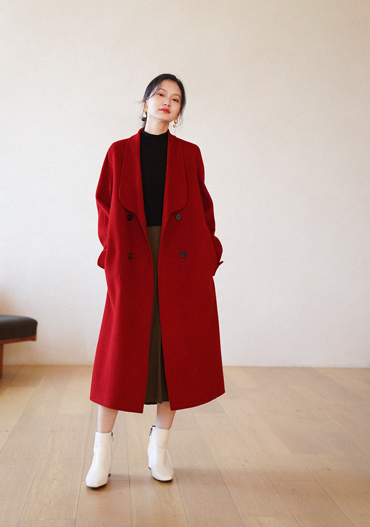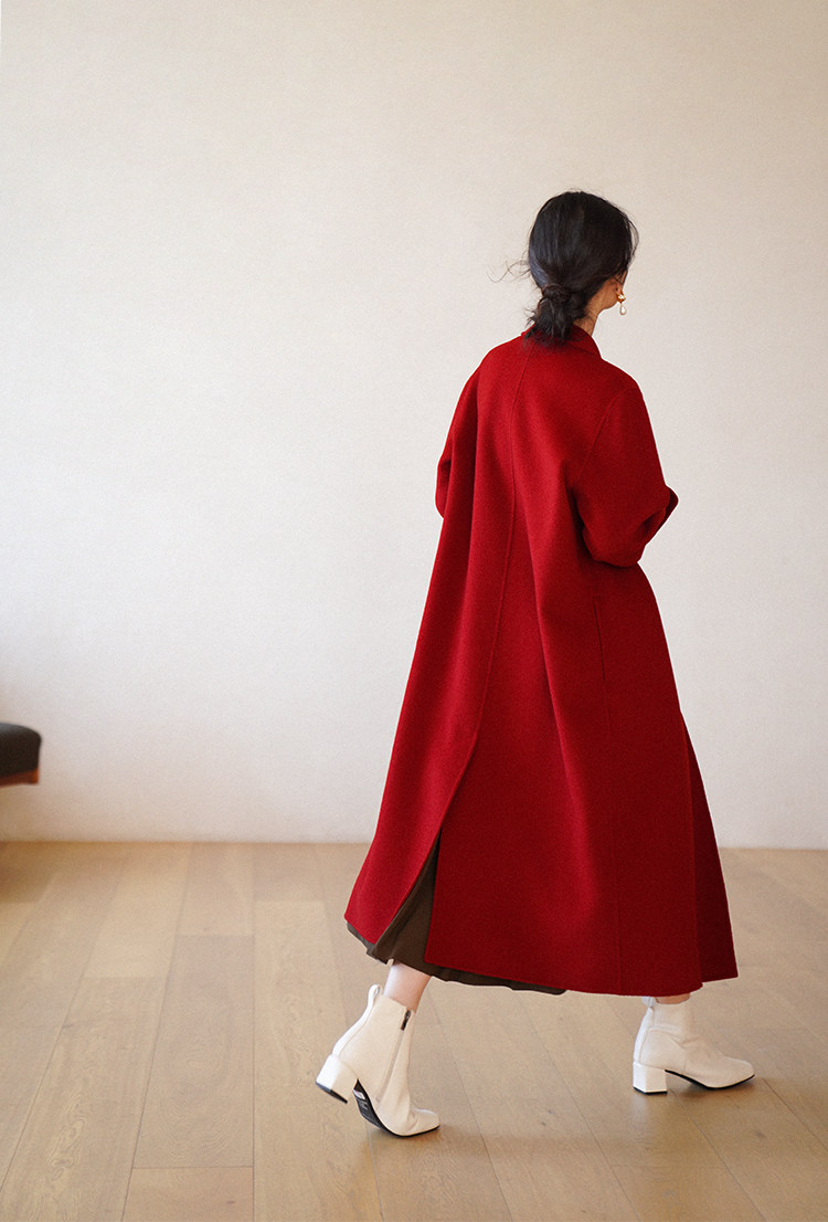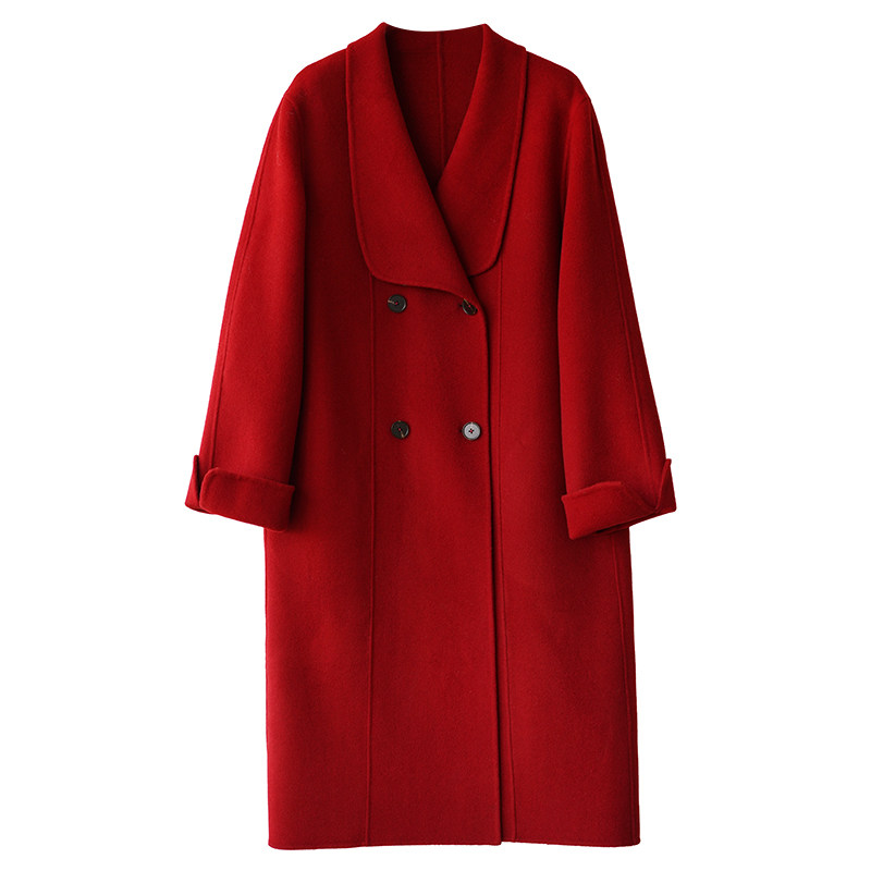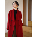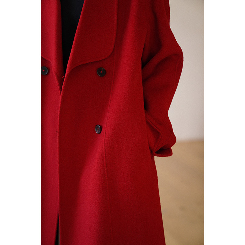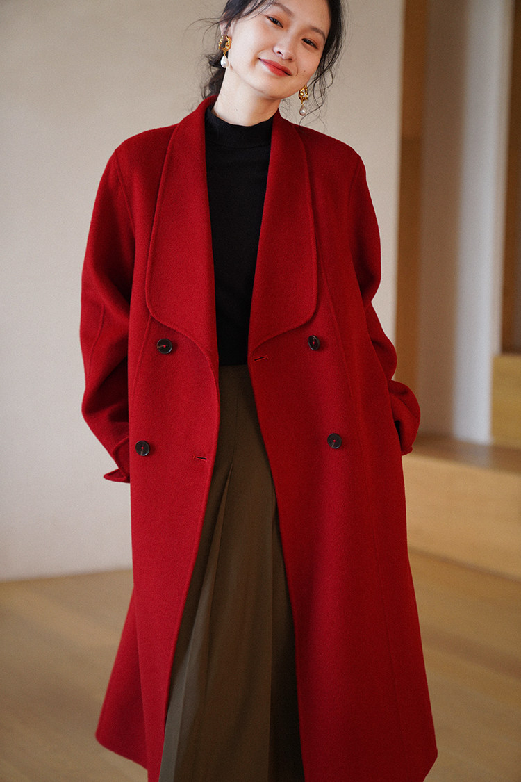 Красное двусторонное шерстяное демисезонное шерстяное пальто