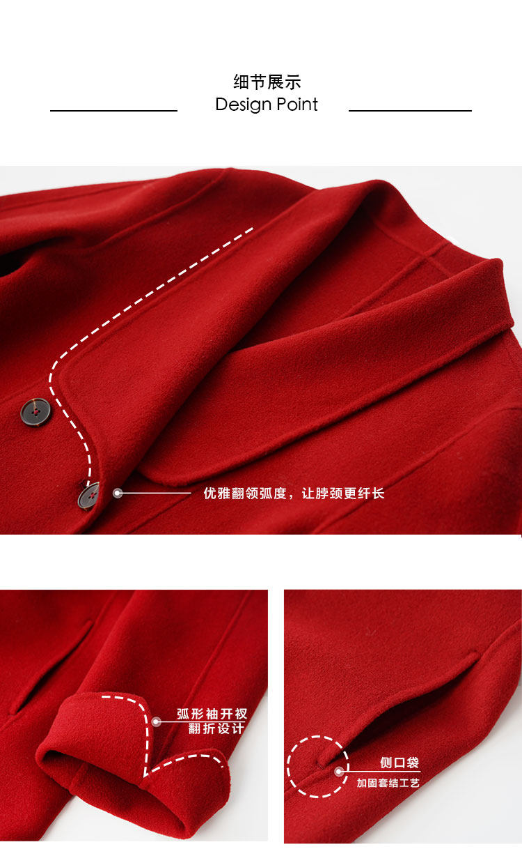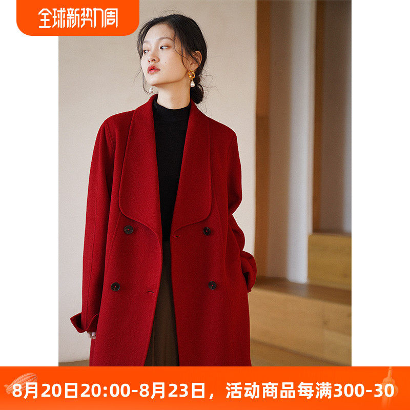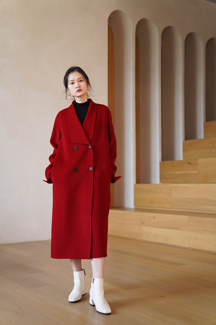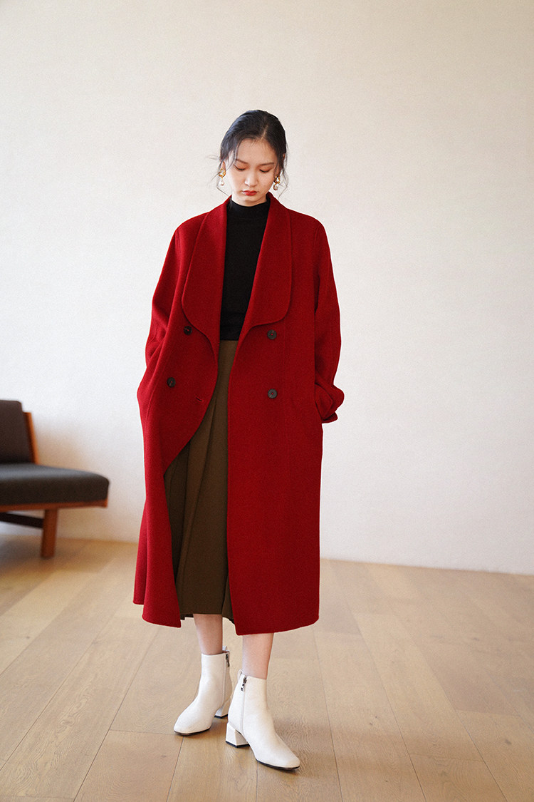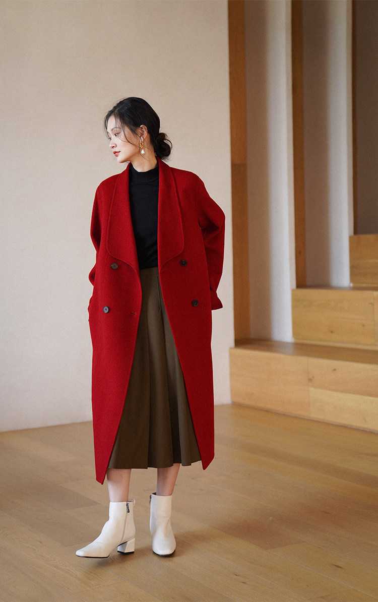 Красное двусторонное шерстяное демисезонное шерстяное пальто