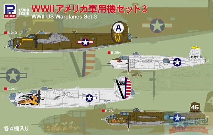Pit-Road S64 1/700 США ВВС B-24+B-25 Бомбардировщика 3