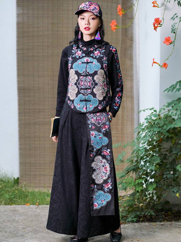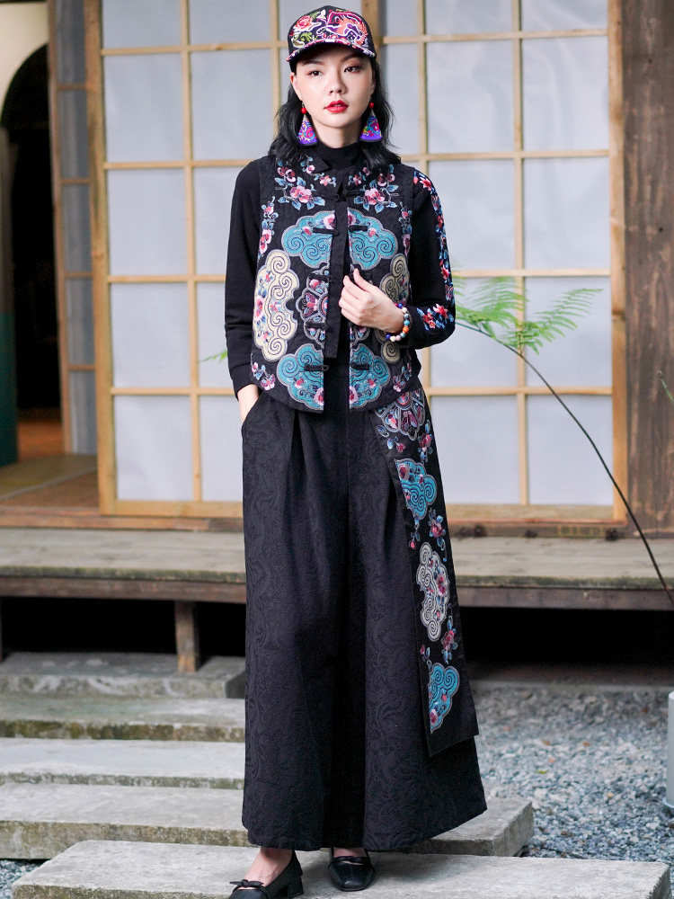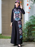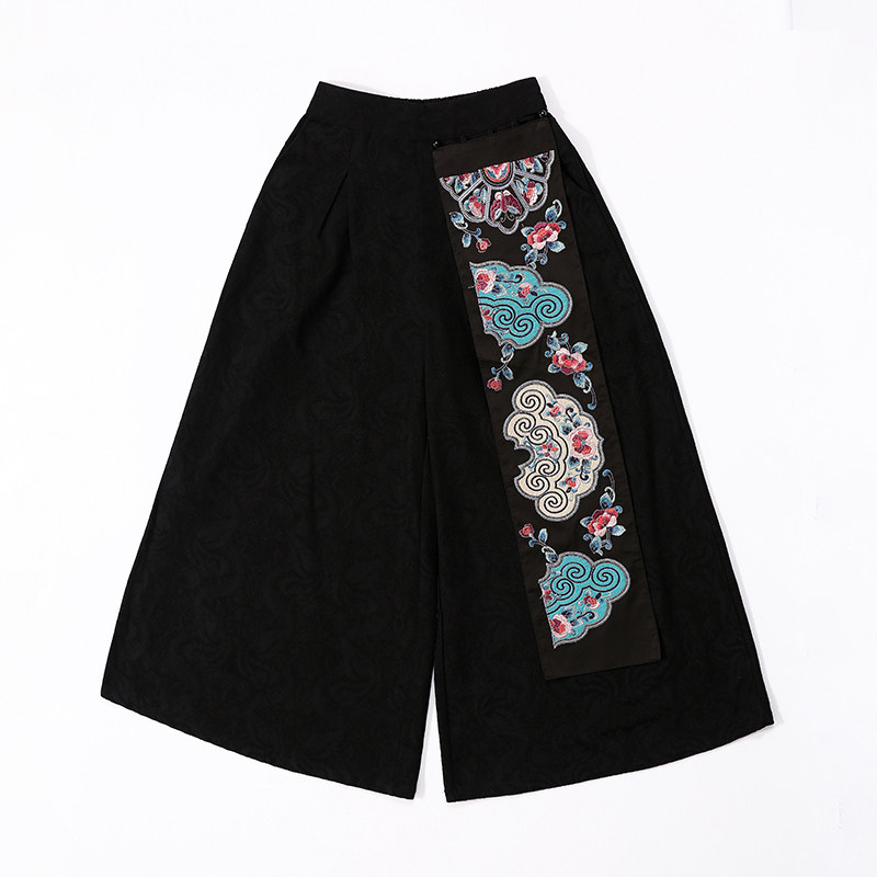 Демисезонные этнические штаны, фонарь, коллекция 2021, этнический стиль, из хлопка и льна, высокая талия