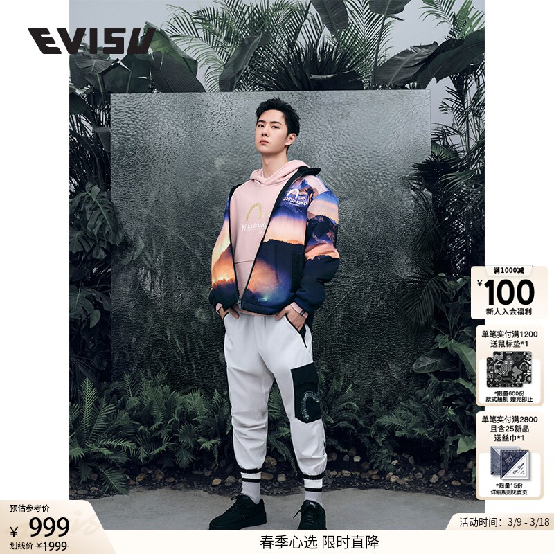 [Та же самая модель Wang Yibo] evisukuro осень и зимний рефлексивные печать в печере печать печать и брюки.