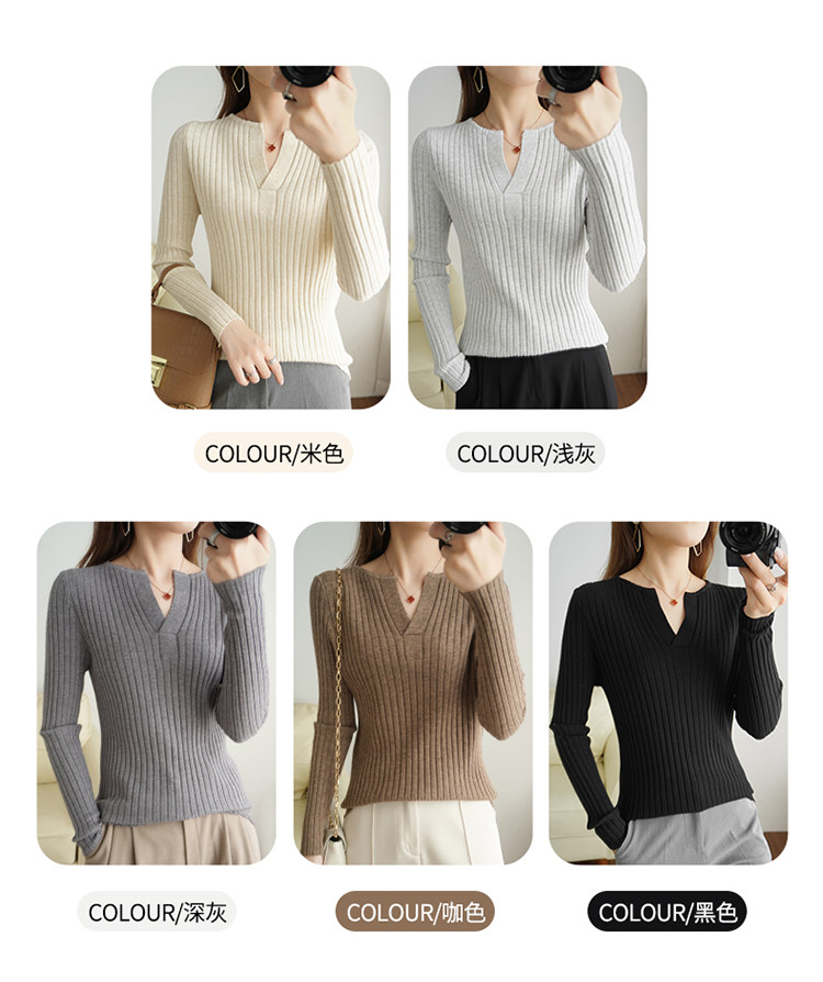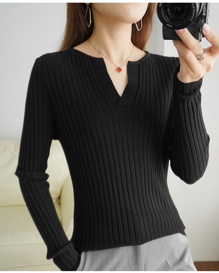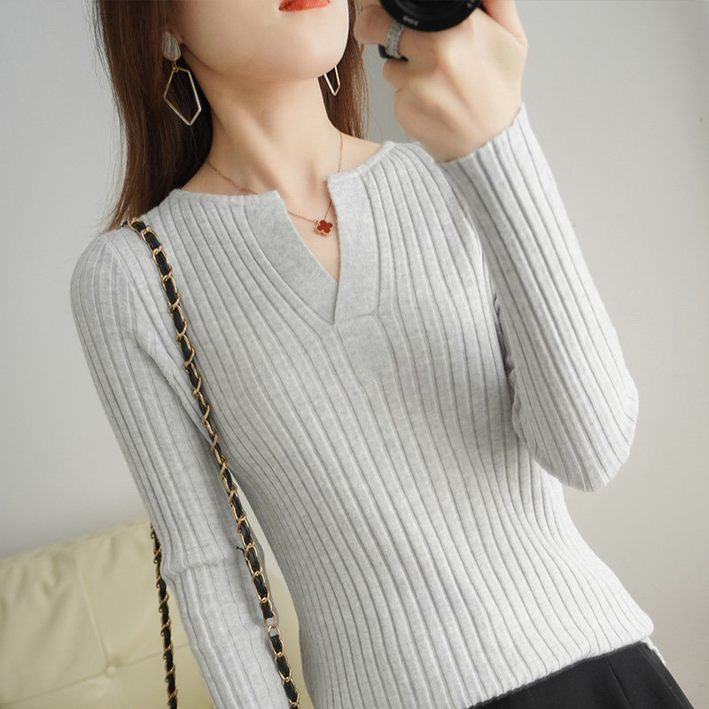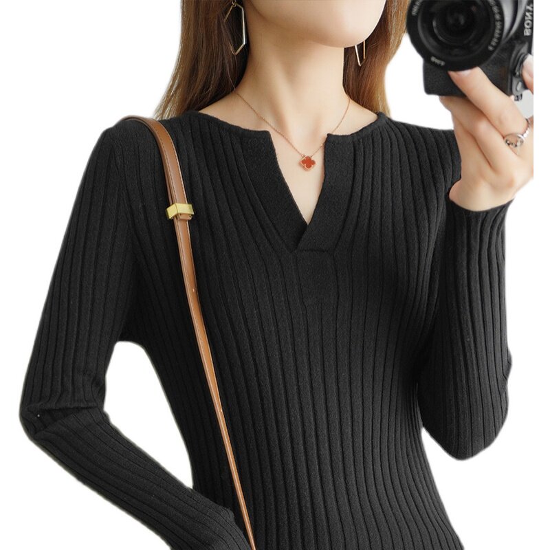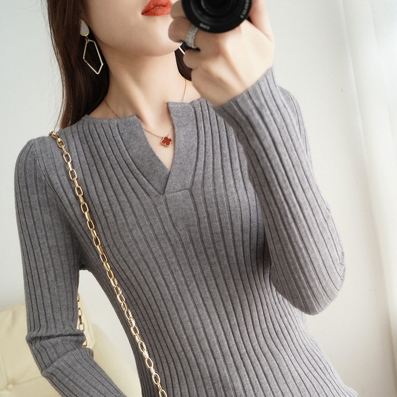 Шерстяной демисезонный трикотажный базовый приятный телу свитер, V-образный вырез, в корейском стиле