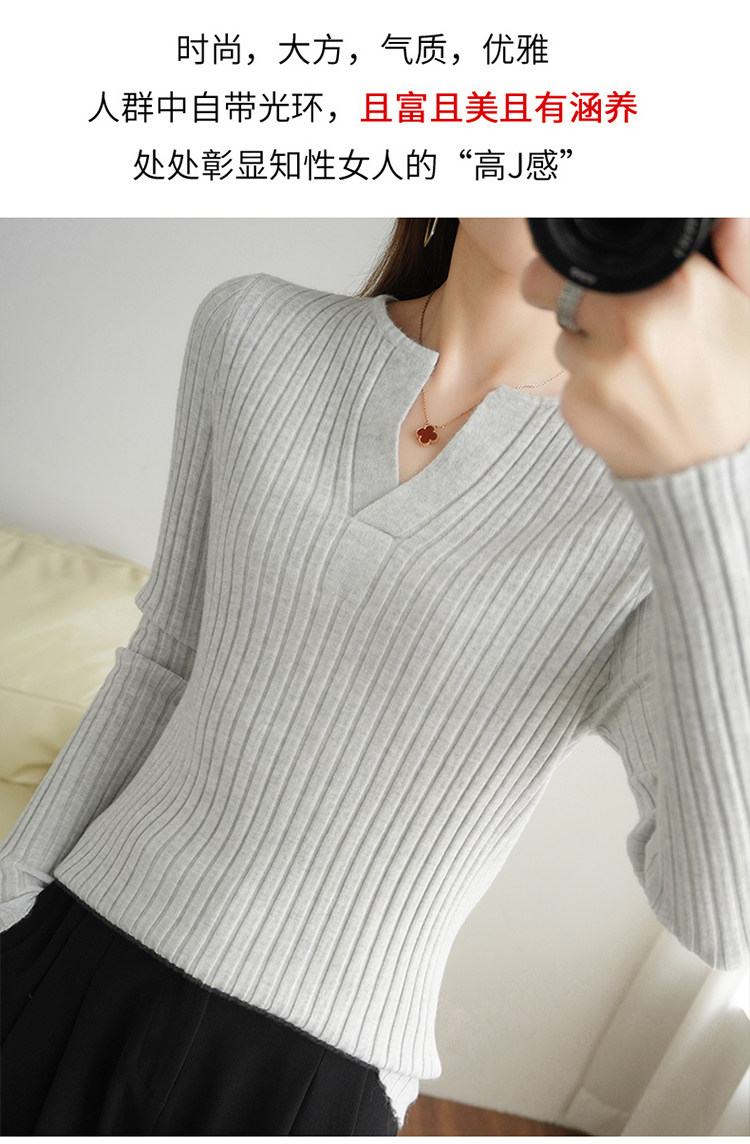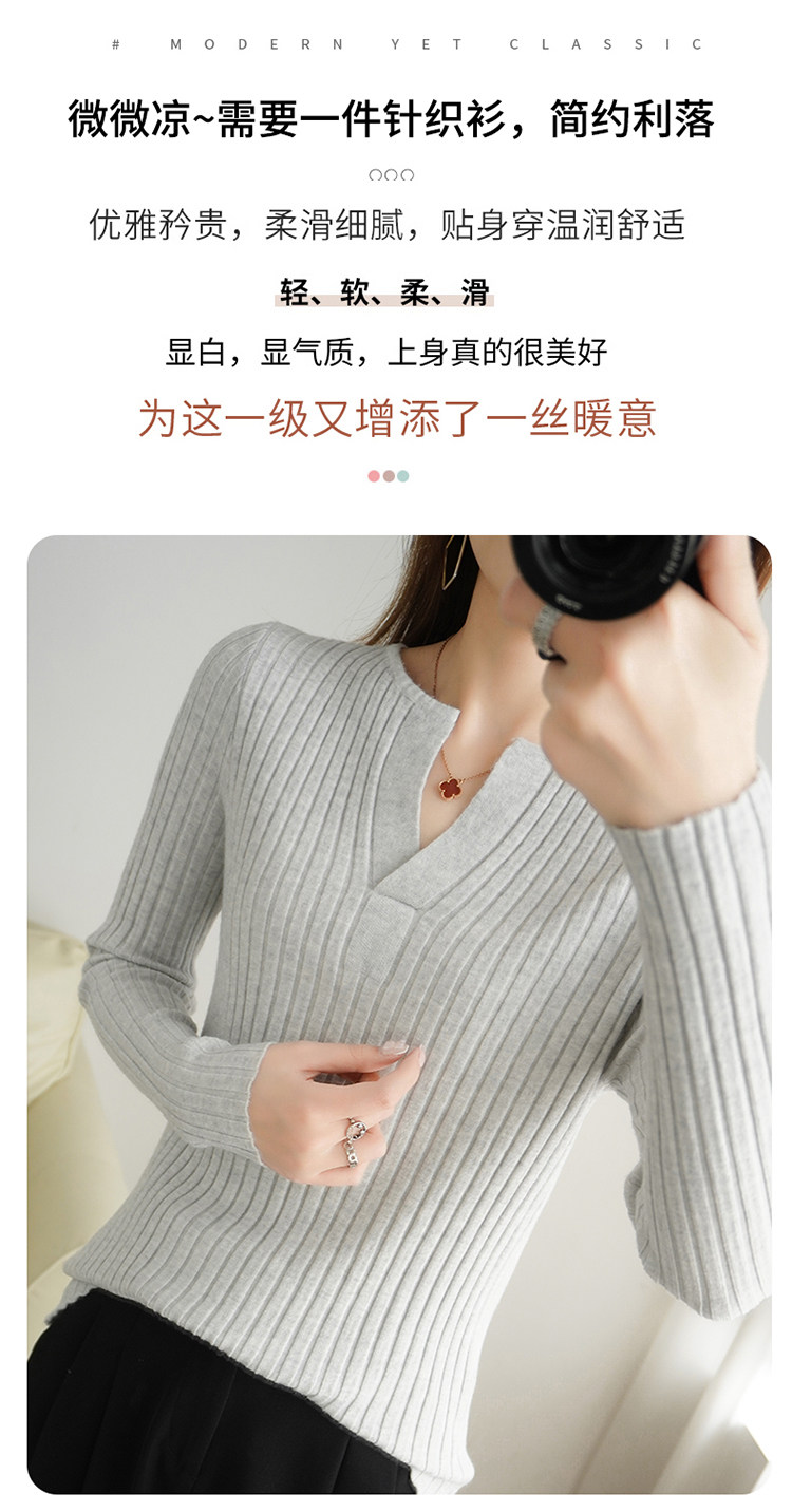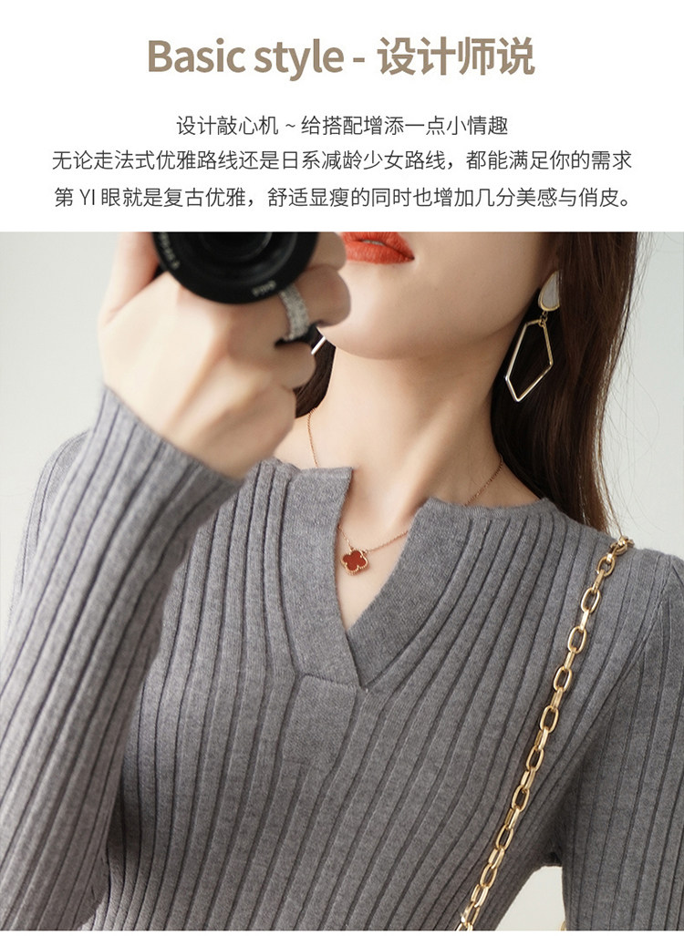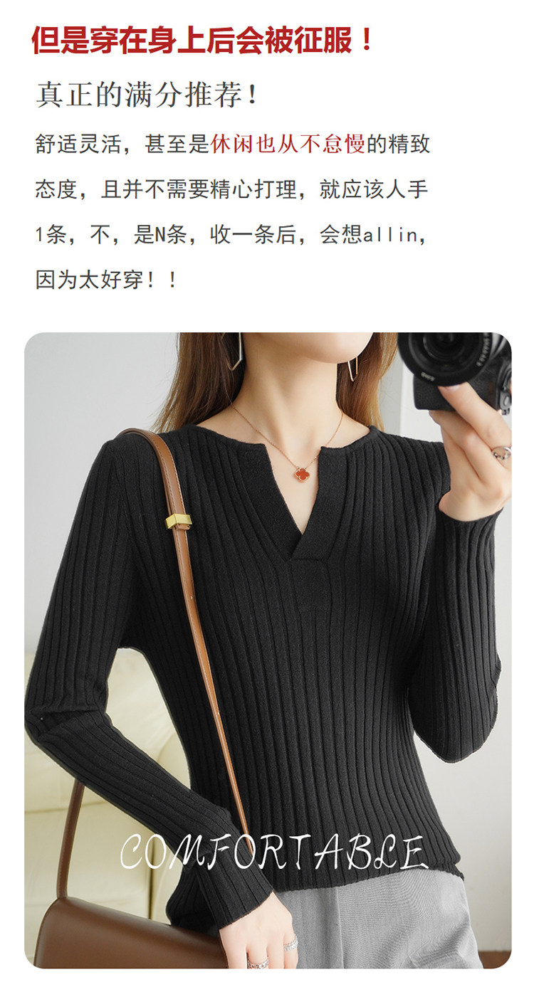 Шерстяной демисезонный трикотажный базовый приятный телу свитер, V-образный вырез, в корейском стиле