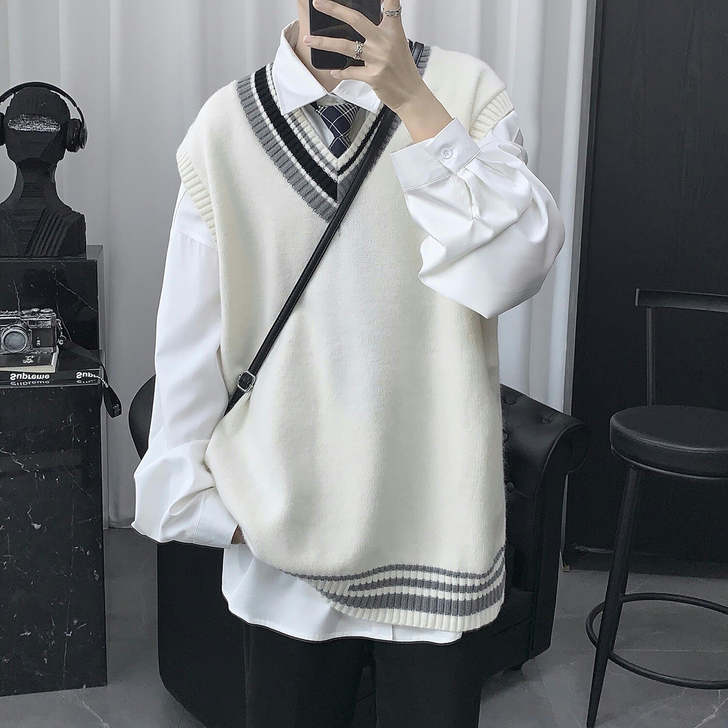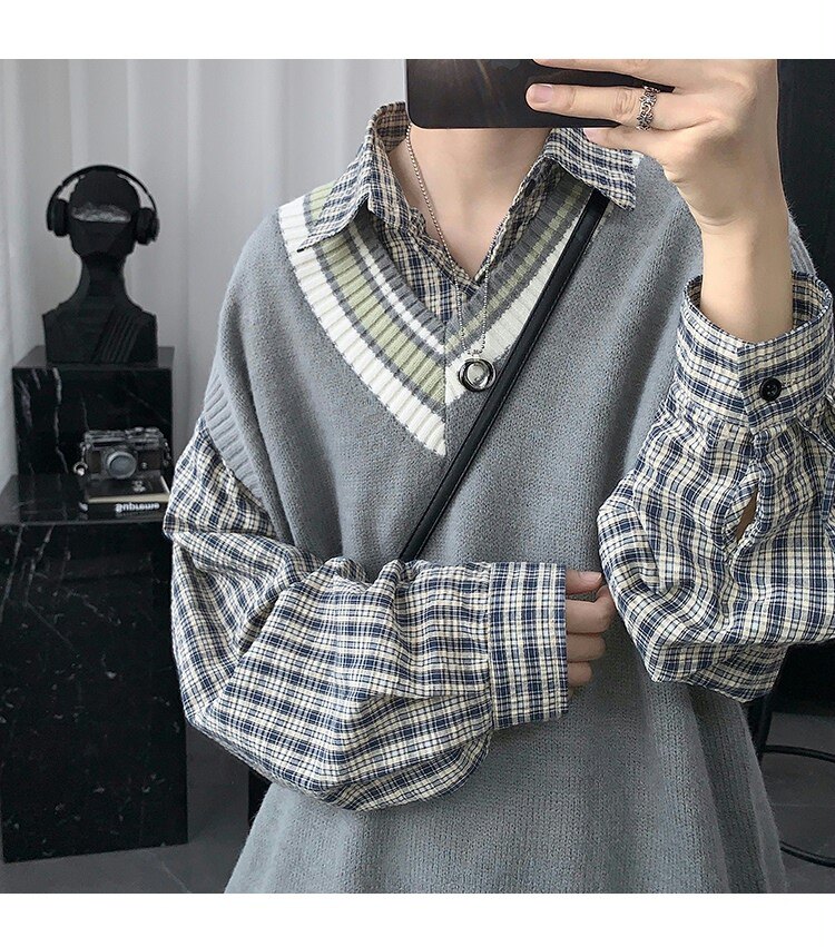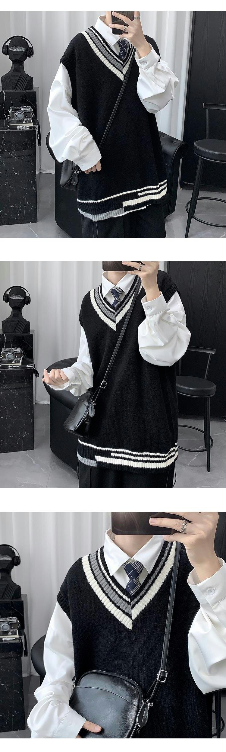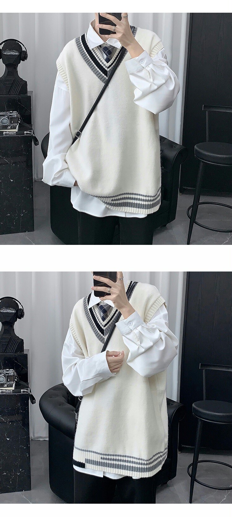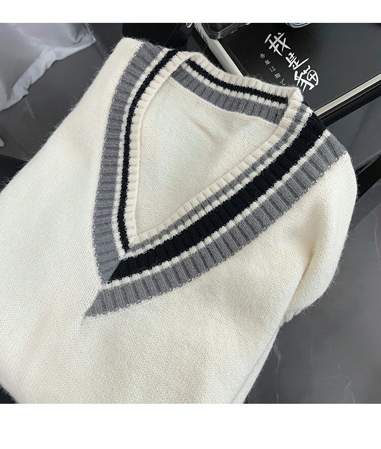 Трикотажный свитер, демисезонный жилет, трендовая удерживающая тепло униформа, V-образный вырез, в корейском стиле, свободный крой
