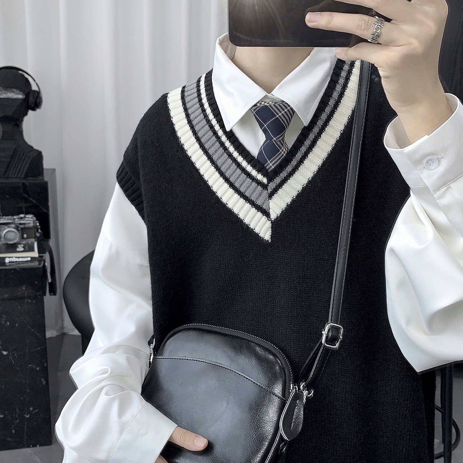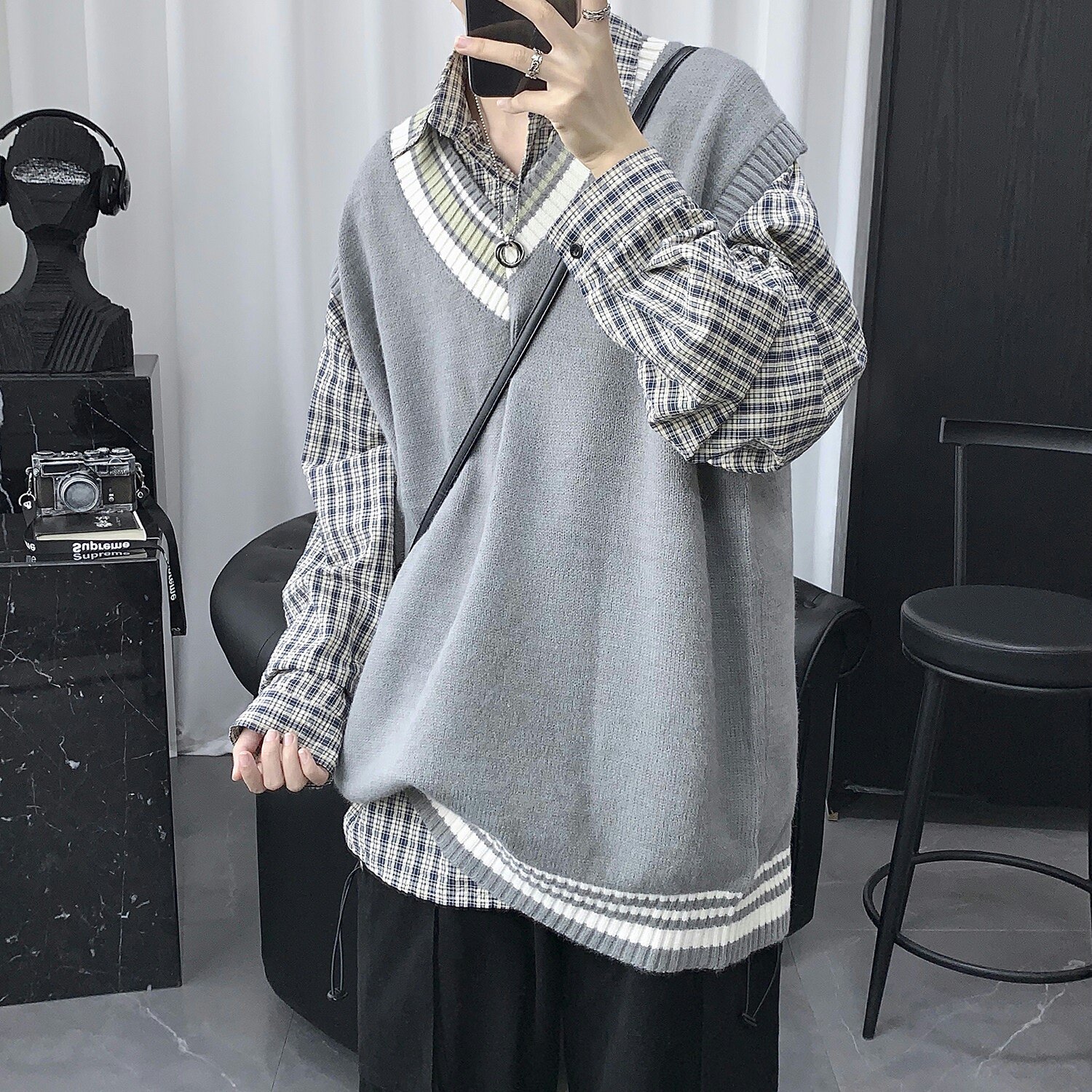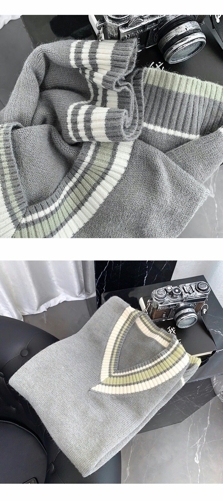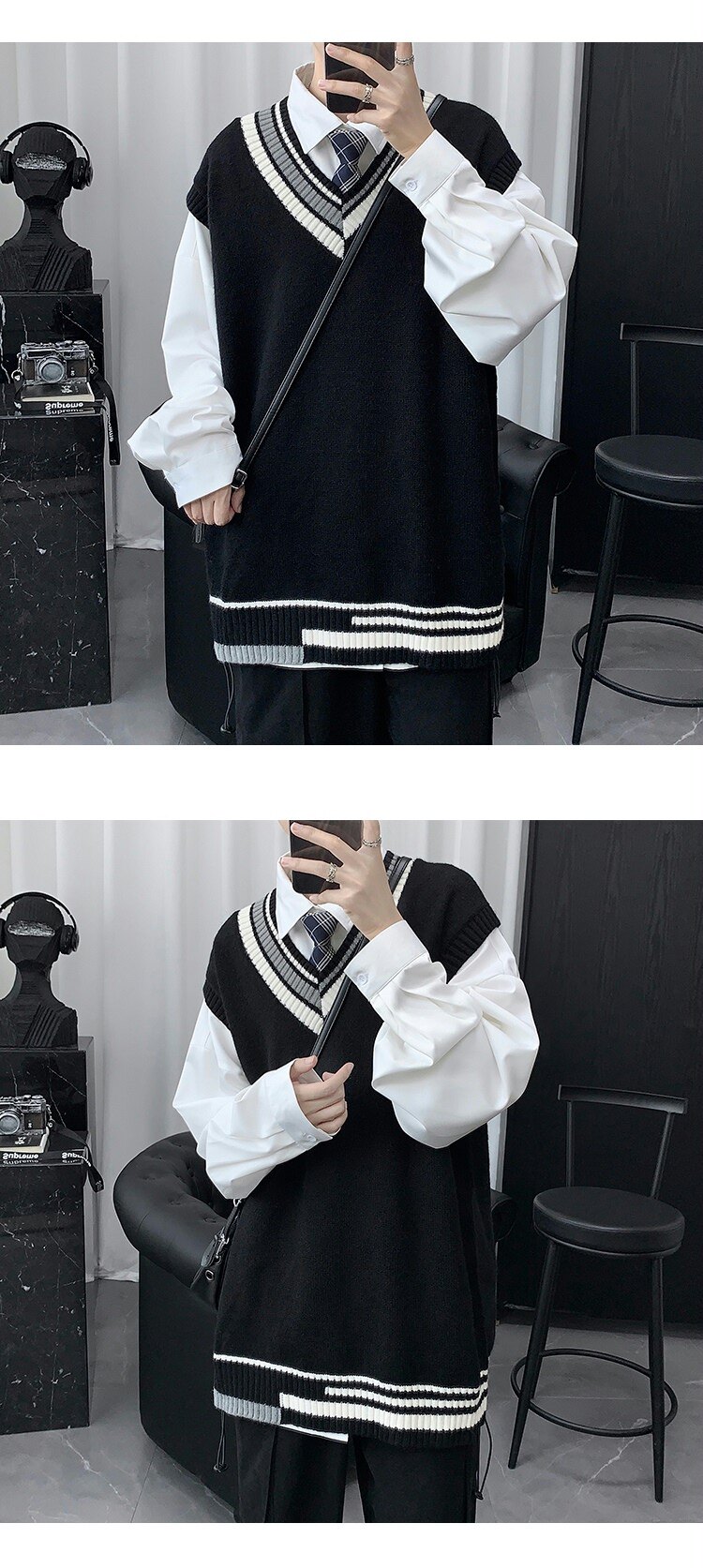 Трикотажный свитер, демисезонный жилет, трендовая удерживающая тепло униформа, V-образный вырез, в корейском стиле, свободный крой