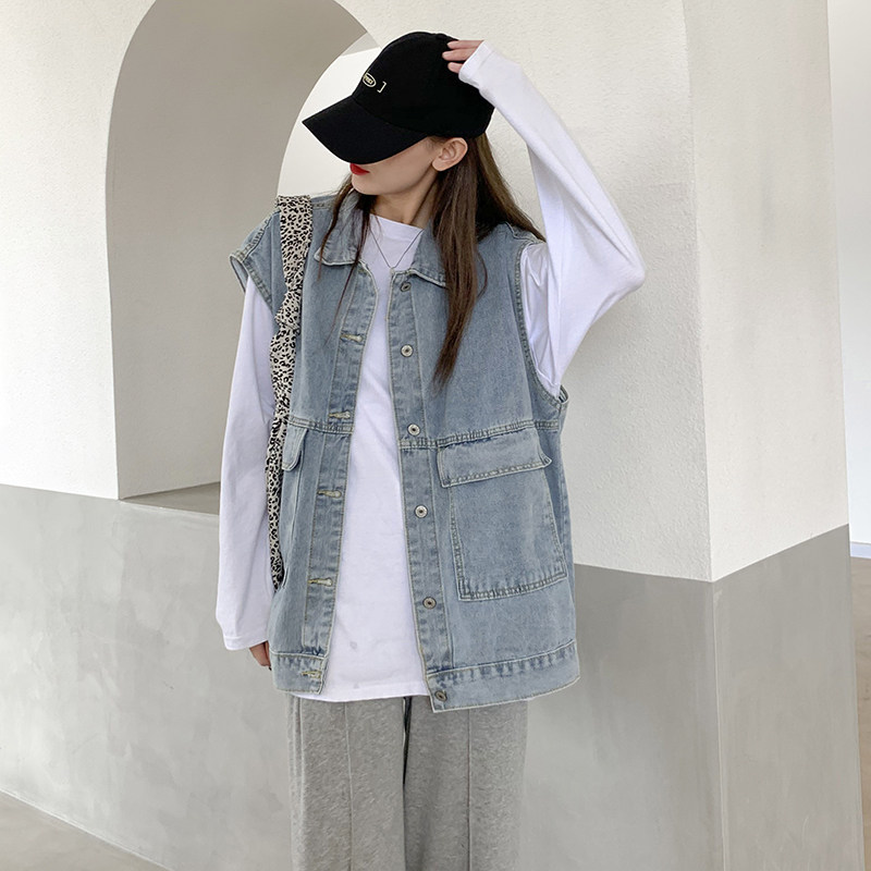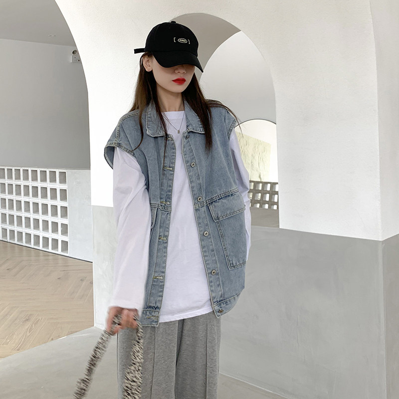 Осенняя джинсовая куртка, жилет, коллекция 2022, в корейском стиле, большой размер, свободный крой