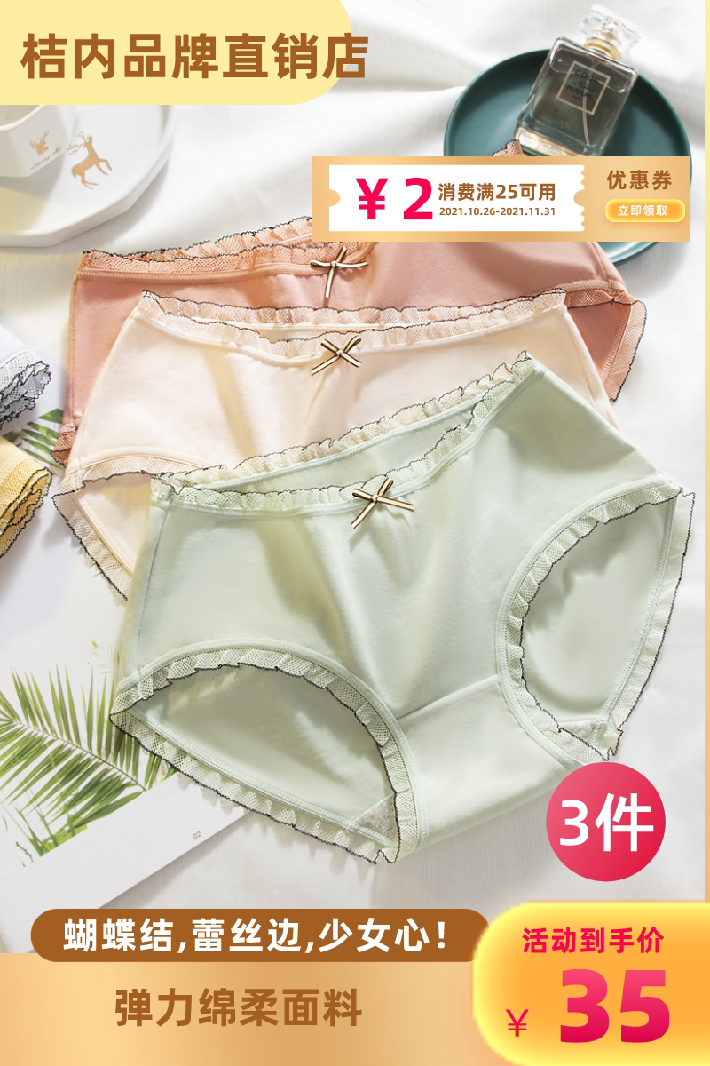 Кружевное нижнее белье с бантиком, комфортные дышащие милые трусы, кружевное платье, в корейском стиле