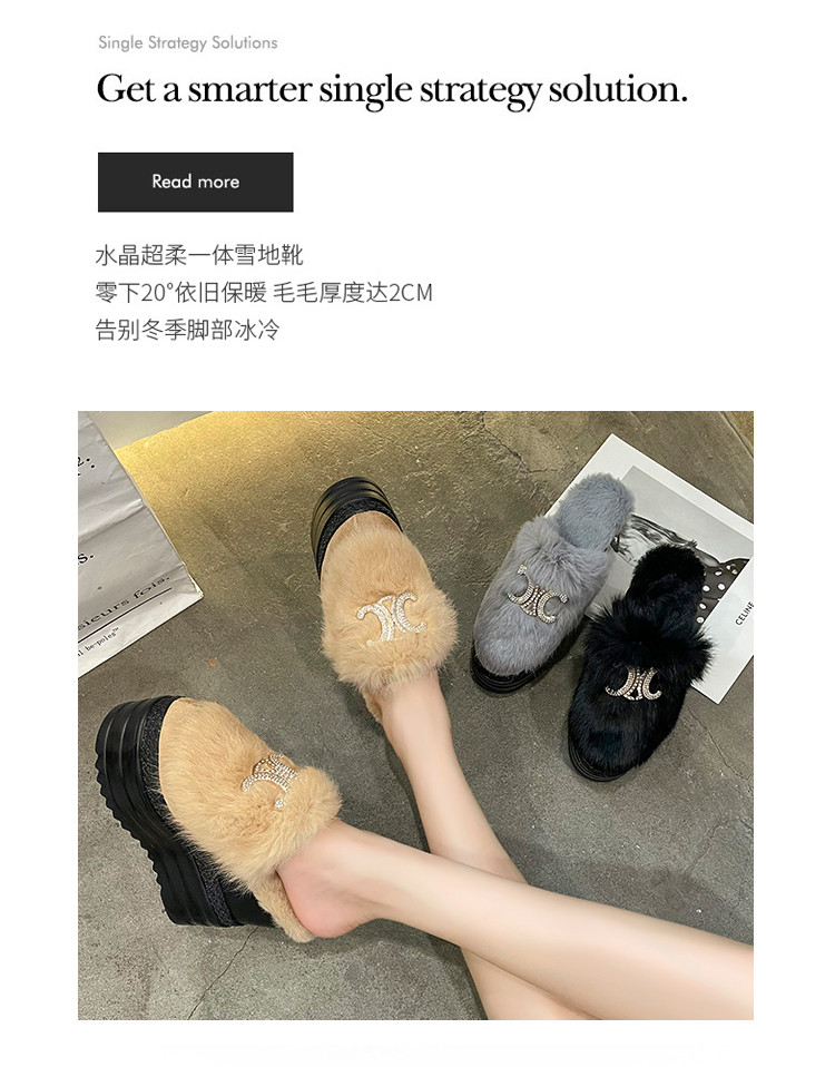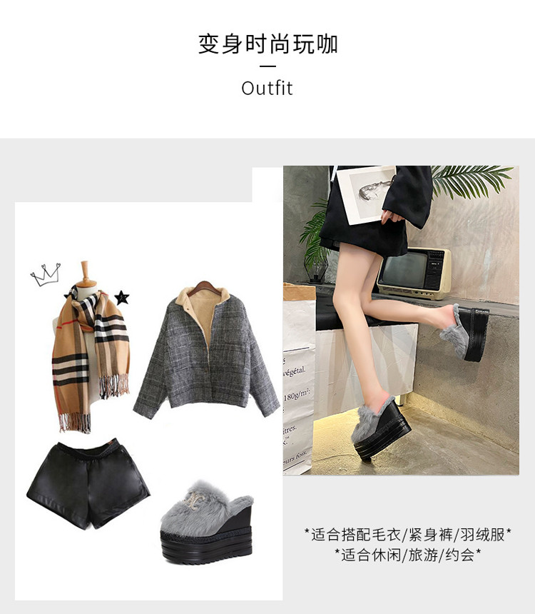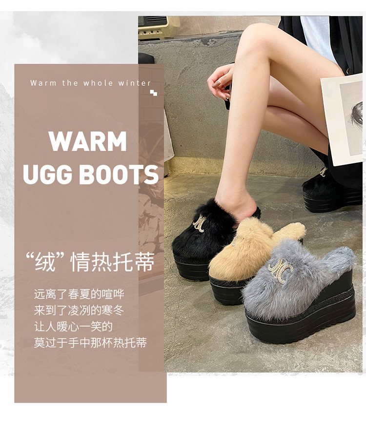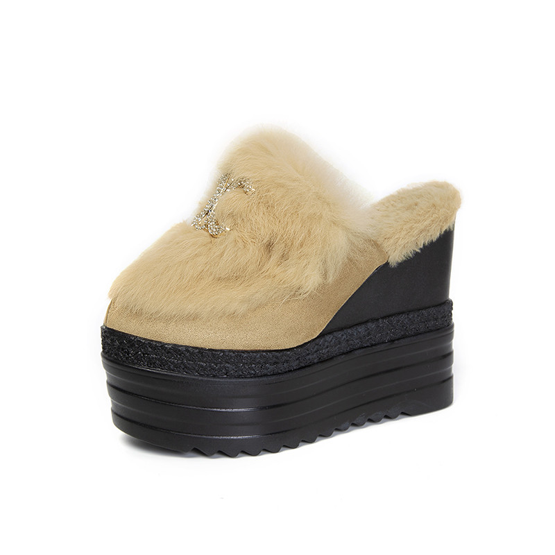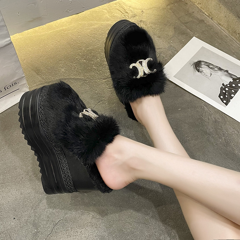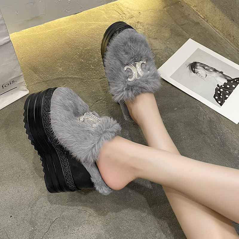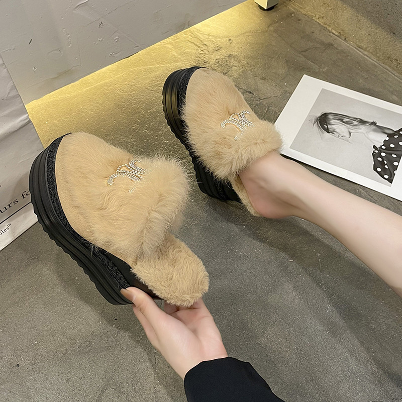 Осень и зима 2021, новый стиль, теплые тапочки на толстой подошве с внутренним носком, женская обувь на танкетке и платформе, ленивые женские туфли на высоком каблуке, меховые туфли