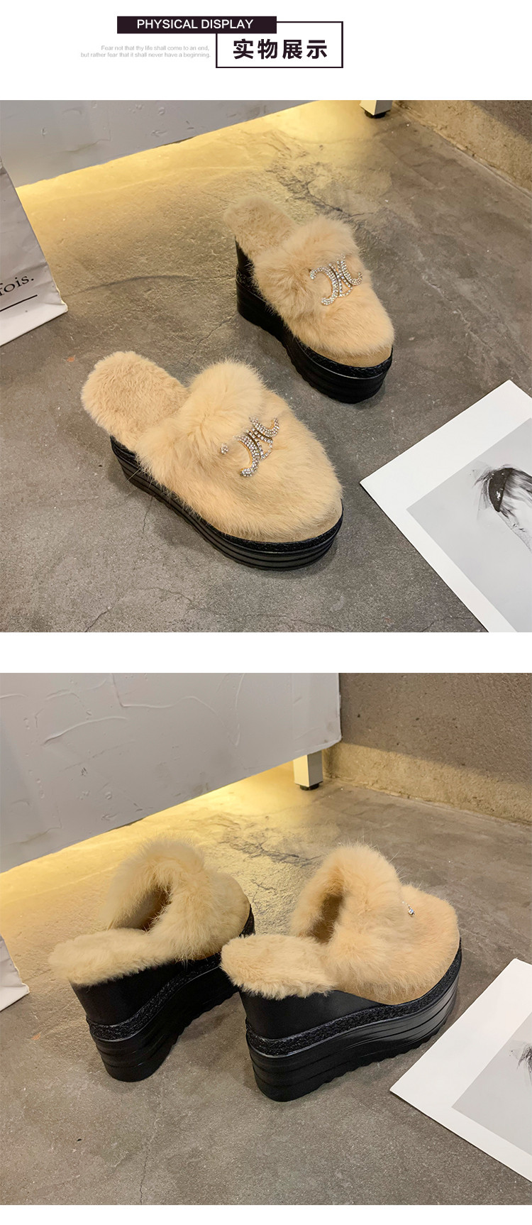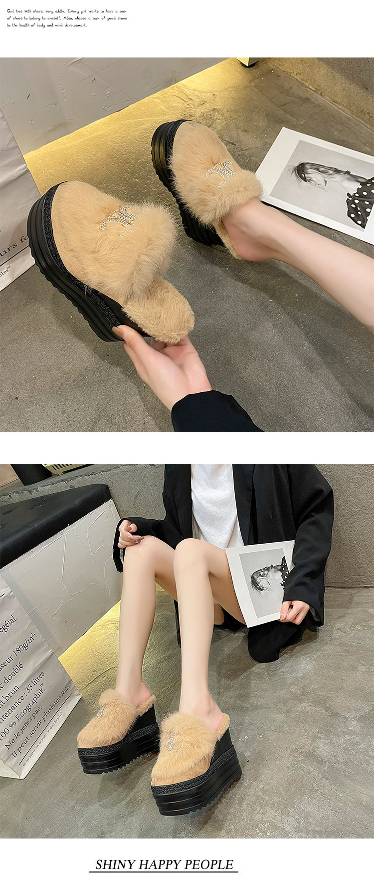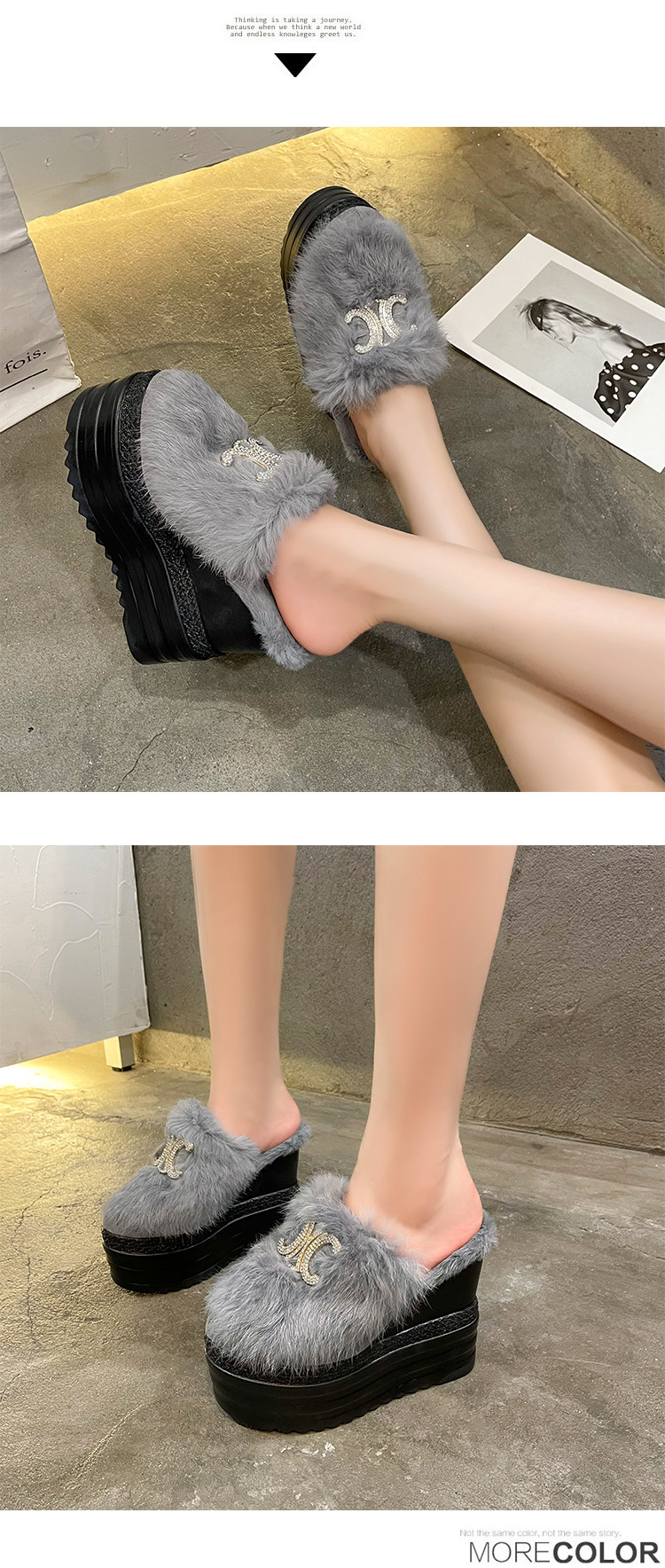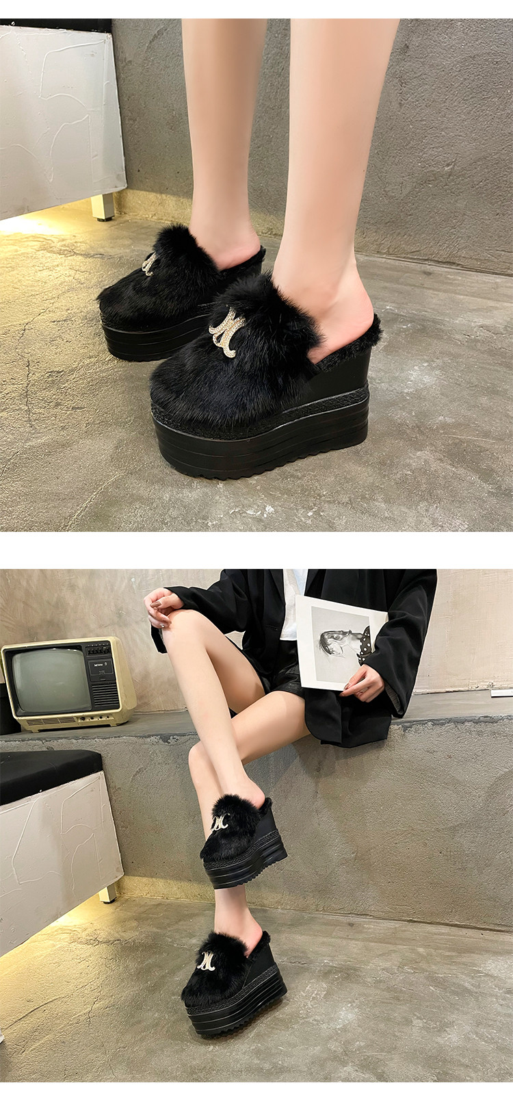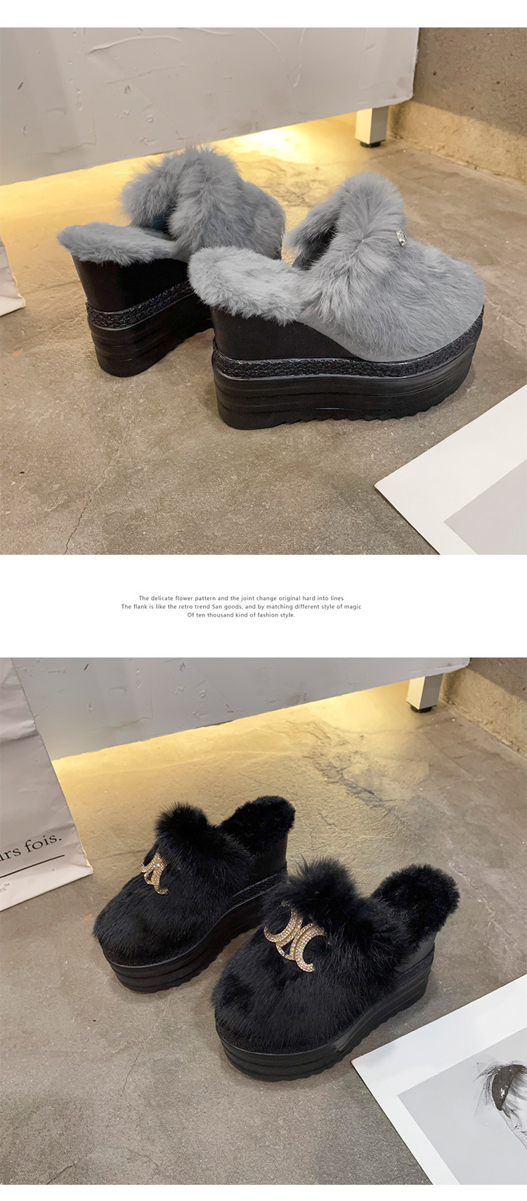 Осень и зима 2021, новый стиль, теплые тапочки на толстой подошве с внутренним носком, женская обувь на танкетке и платформе, ленивые женские туфли на высоком каблуке, меховые туфли
