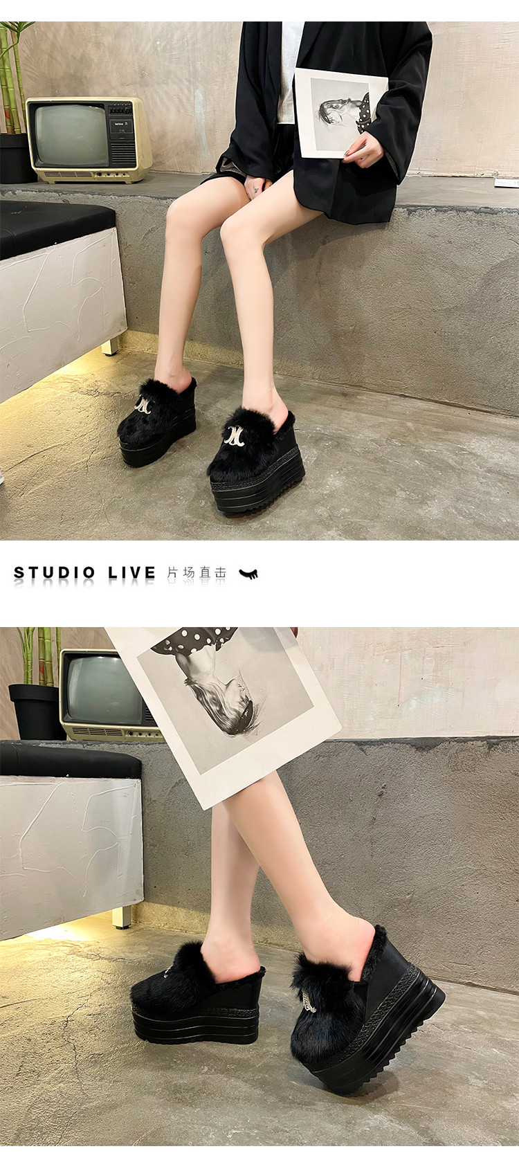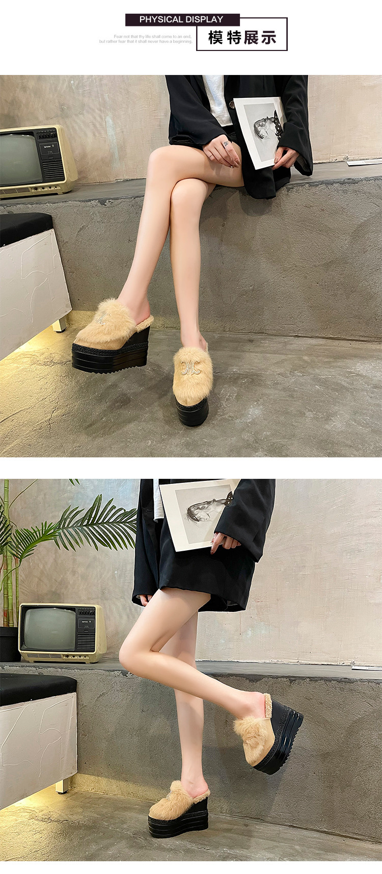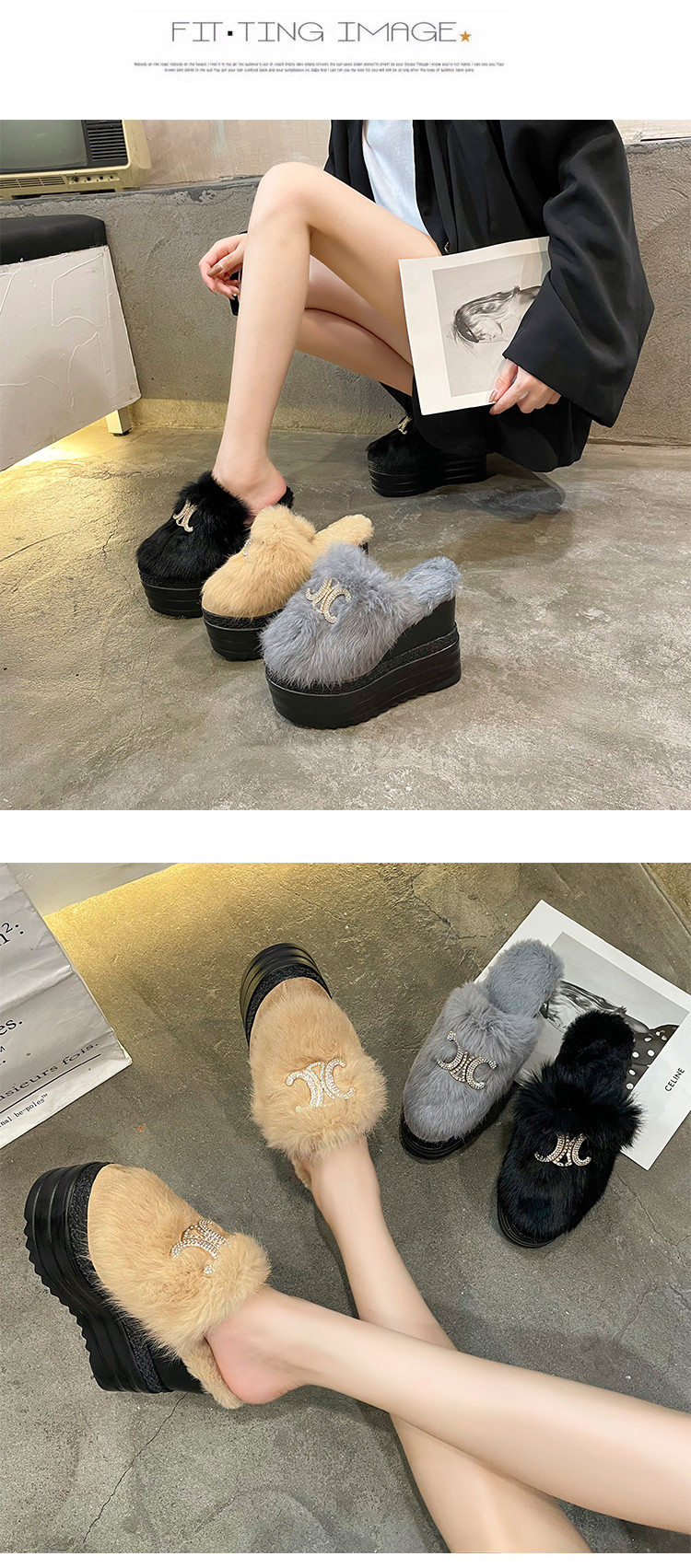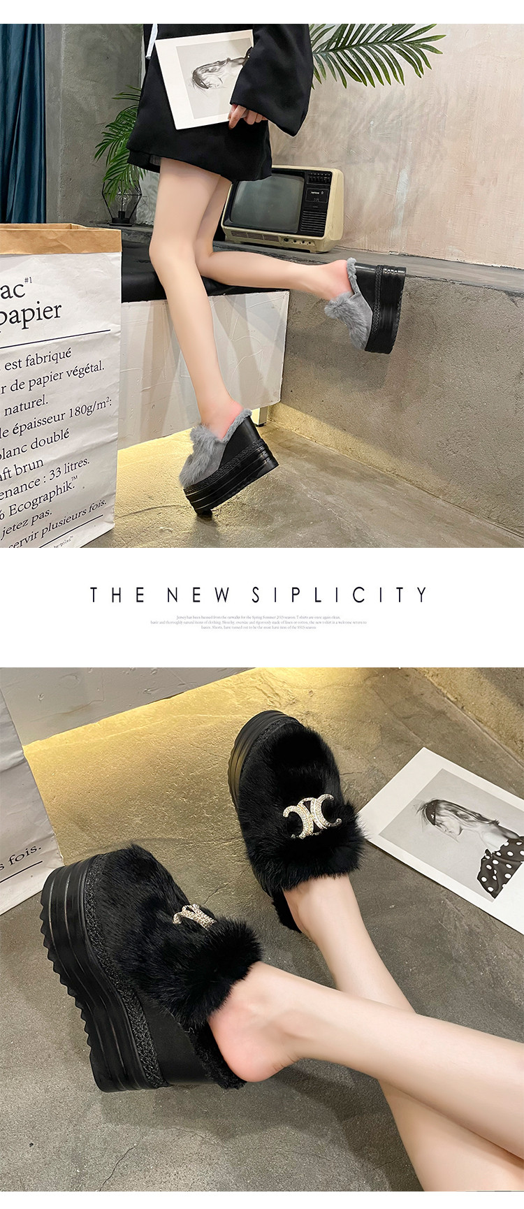 Осень и зима 2021, новый стиль, теплые тапочки на толстой подошве с внутренним носком, женская обувь на танкетке и платформе, ленивые женские туфли на высоком каблуке, меховые туфли
