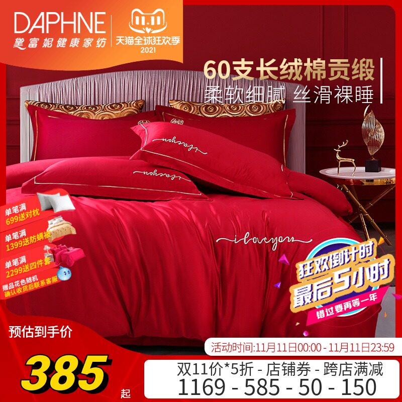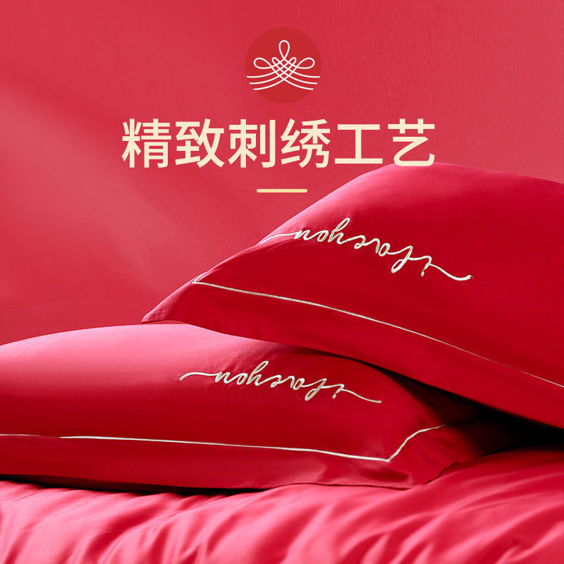 Элитный хлопковый комплект, красное хлопковое покрывало, 4 предмета