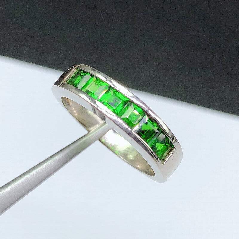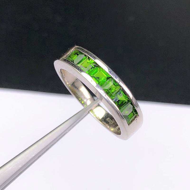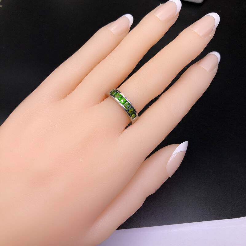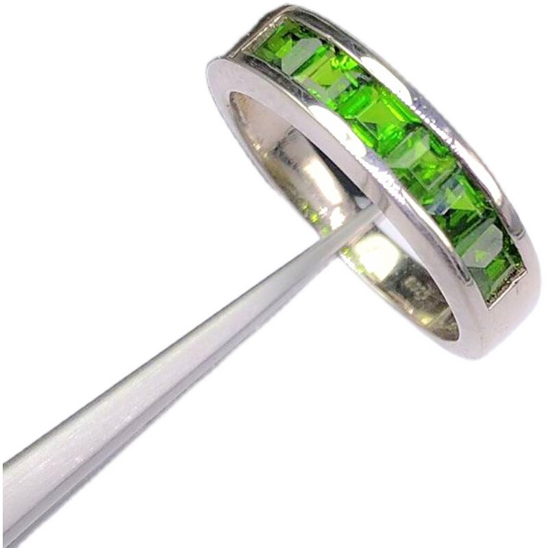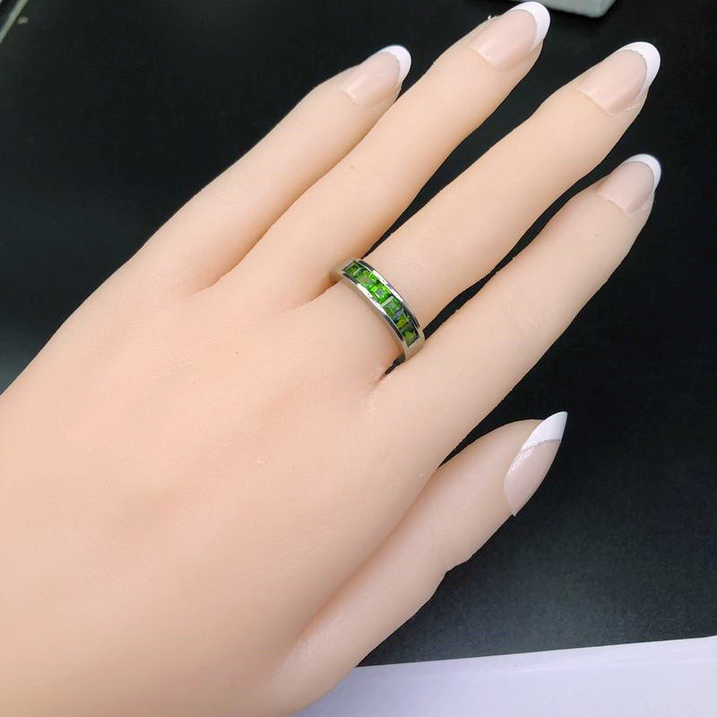 Квадратное натуральное кольцо с камнем изумруд, платиновая золотая вода, серебро 925 пробы