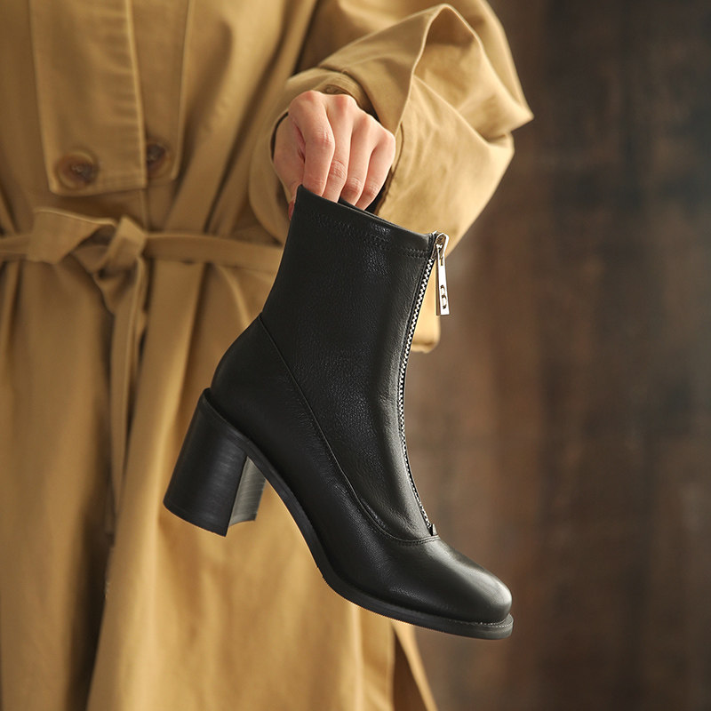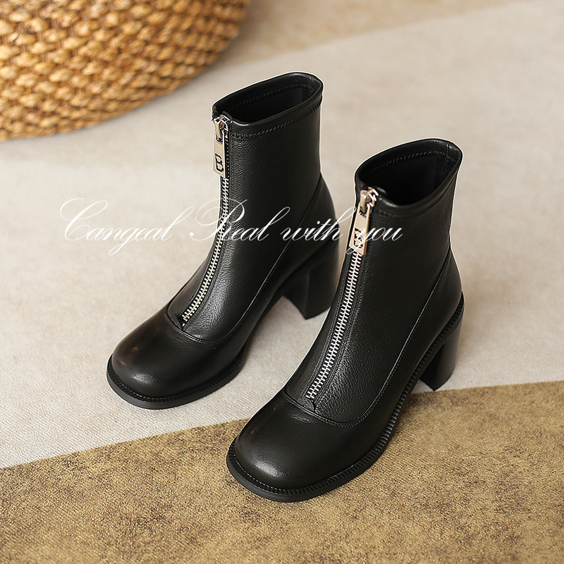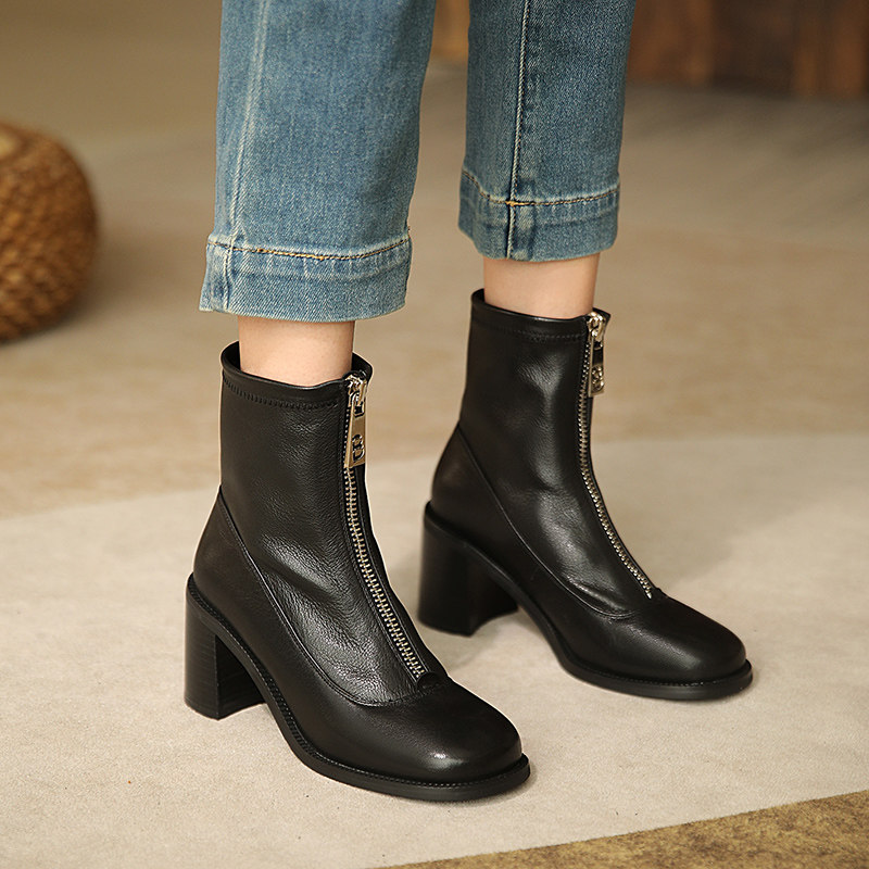 Martens, демисезонные черные короткие сапоги с молнией, коллекция 2023, из натуральной кожи