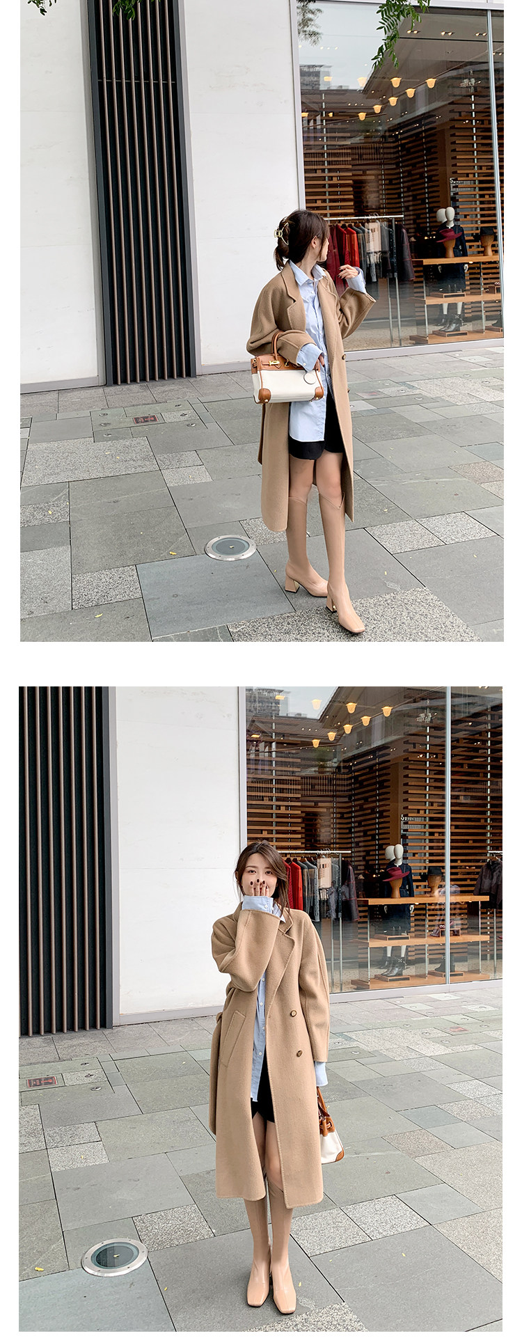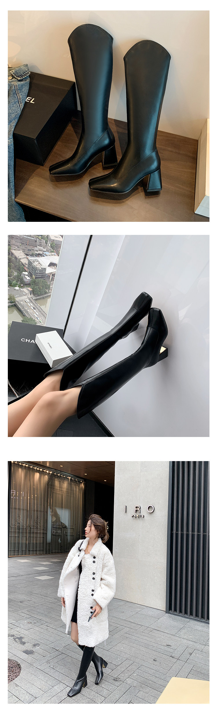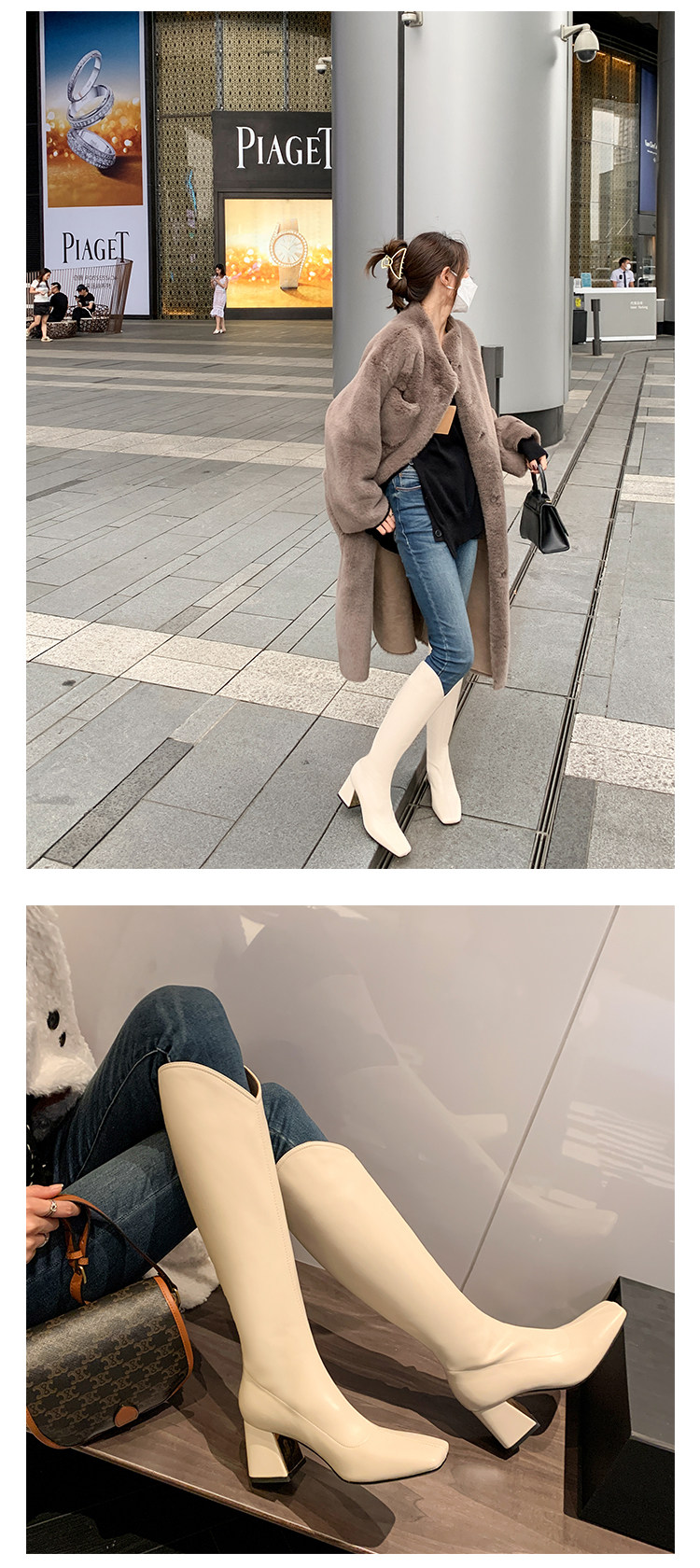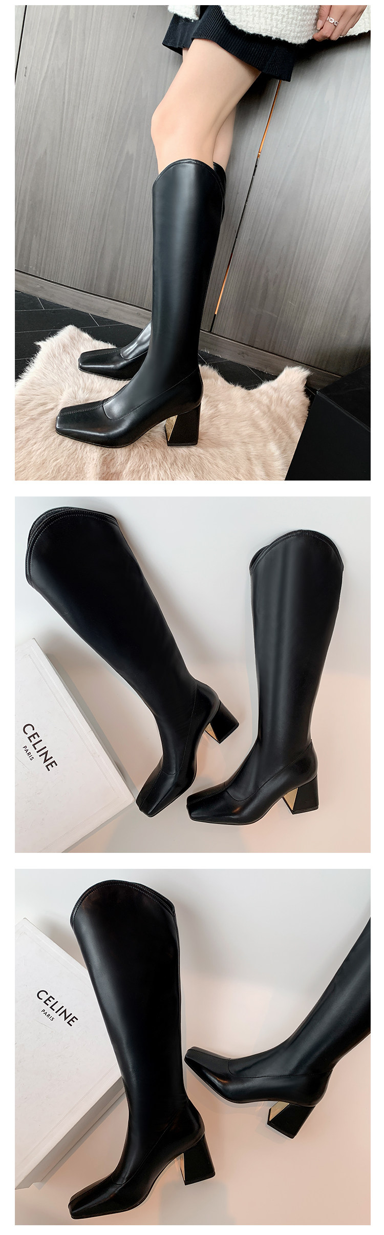 Женские ботинки с V-образным квадратным носком, рыцарские сапоги, высокие каблуки, толстые каблуки, высокие сапоги на резинке, узкие сапоги без колен, цвет молочного чая.