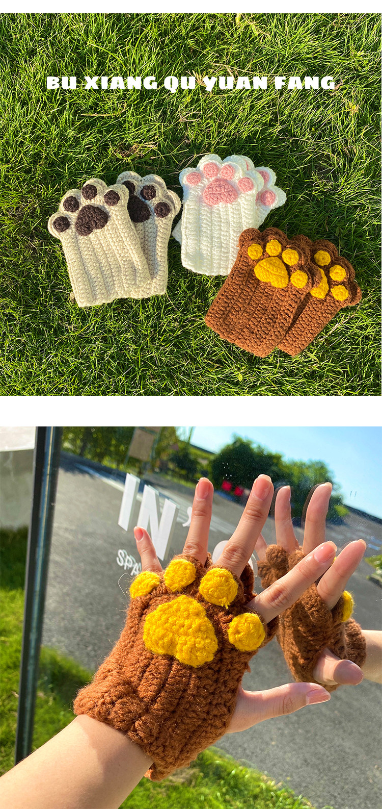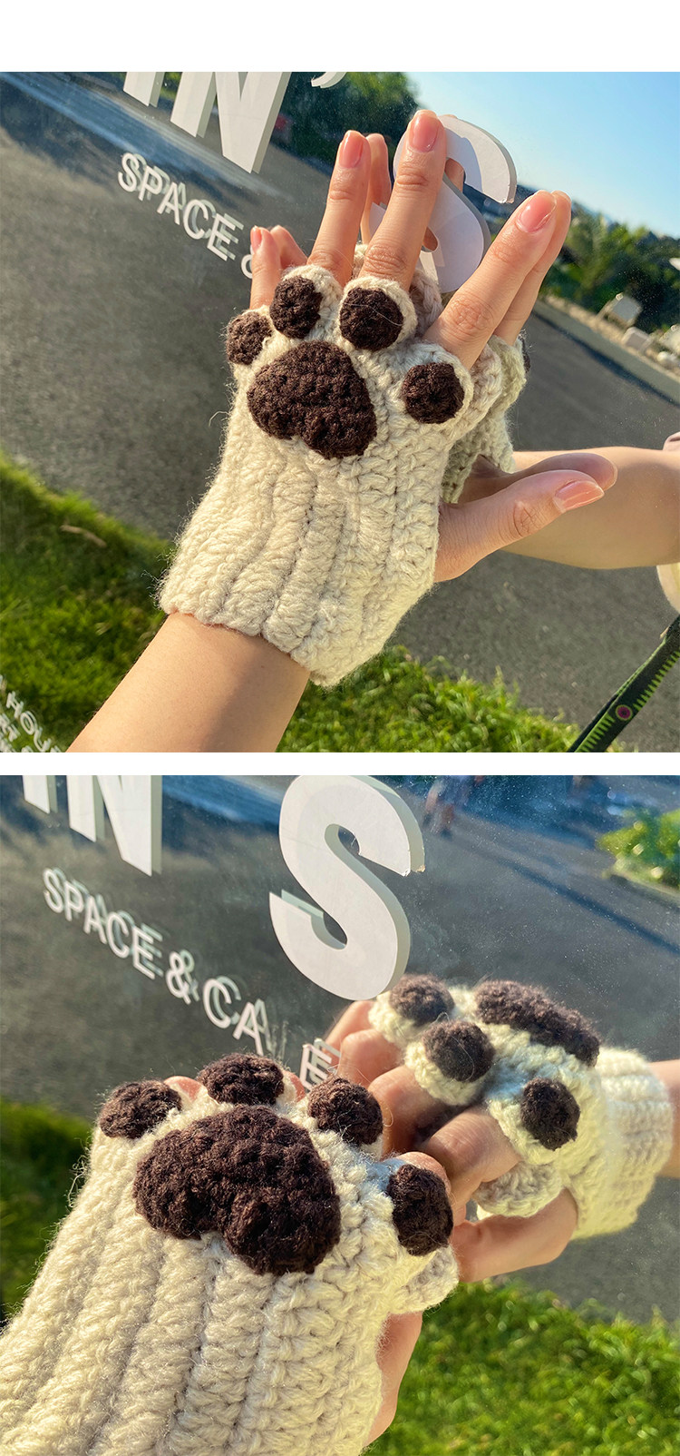 Милые зимние брендовые перчатки ручной работы, без пальцев