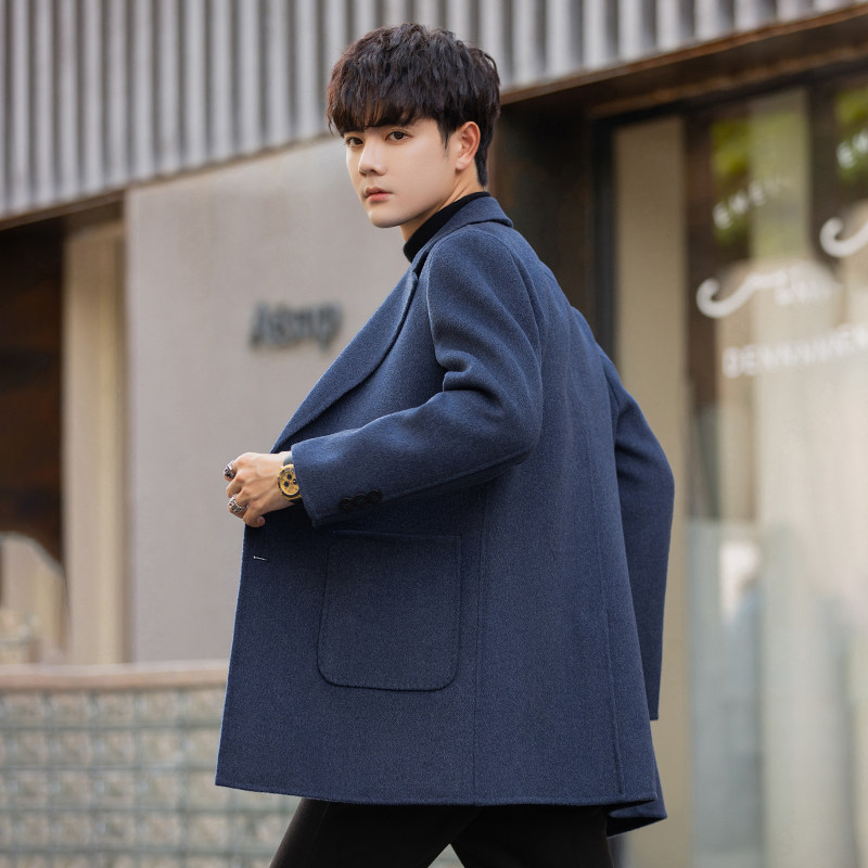 Демисезонное шерстяное длинное шерстяное пальто, трендовая двусторонная куртка, средней длины, в корейском стиле