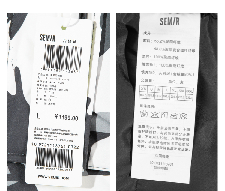 Semir, Tide, зимний пуховик, камуфляжная куртка, коллекция 2021, свободный крой, увеличенная толщина