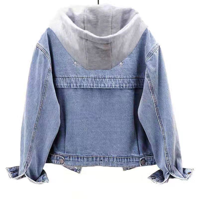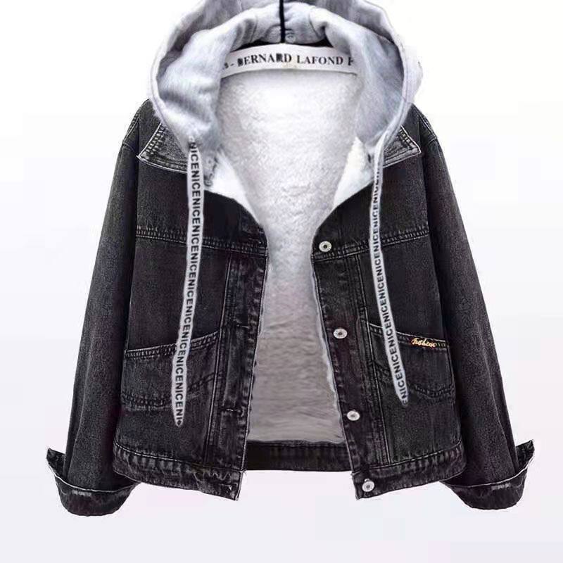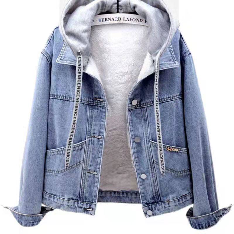 Джинсовая демисезонная флисовая удерживающая тепло трендовая куртка с капюшоном, оверсайз, в корейском стиле, в западном стиле, популярно в интернете