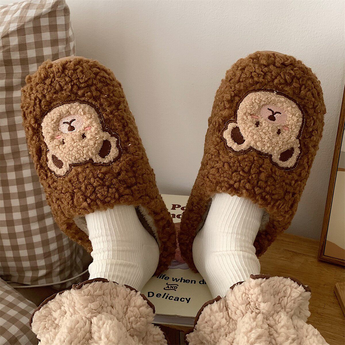 Мультяшные нескользящие тапочки, с медвежатами, мягкая подошва
