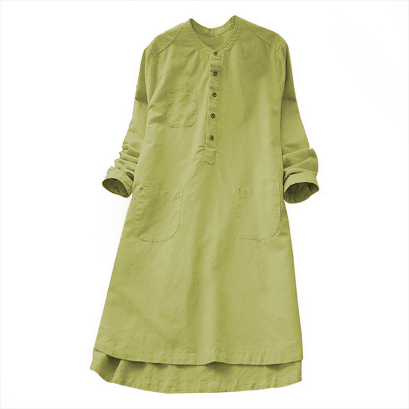(Трансграничная торговля), осенний лонгслив, рубашка, длинная юбка, из хлопка и льна, оверсайз, размер