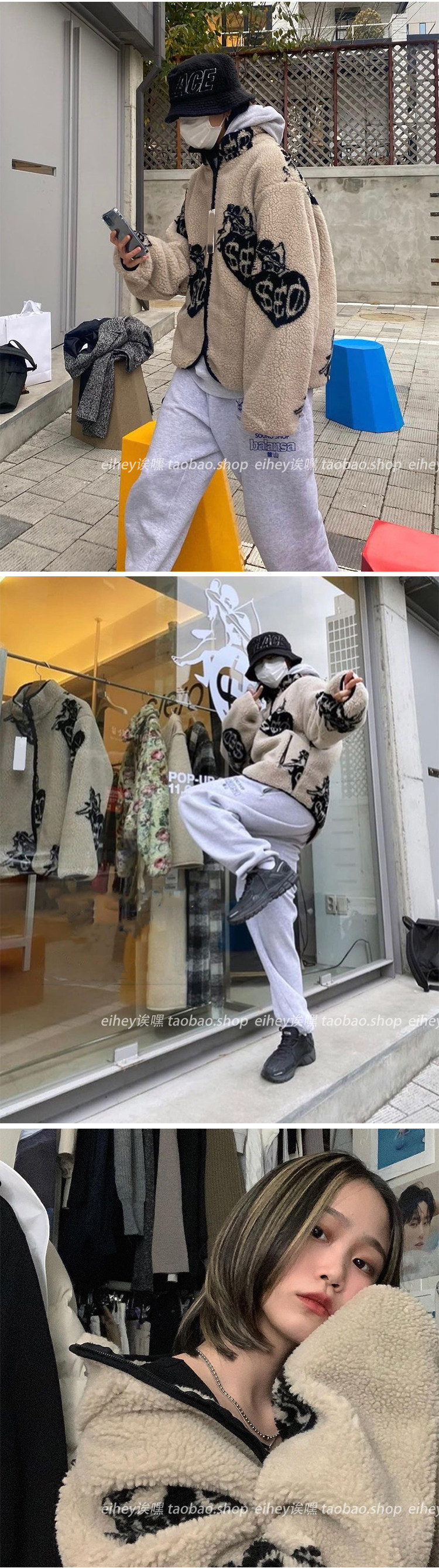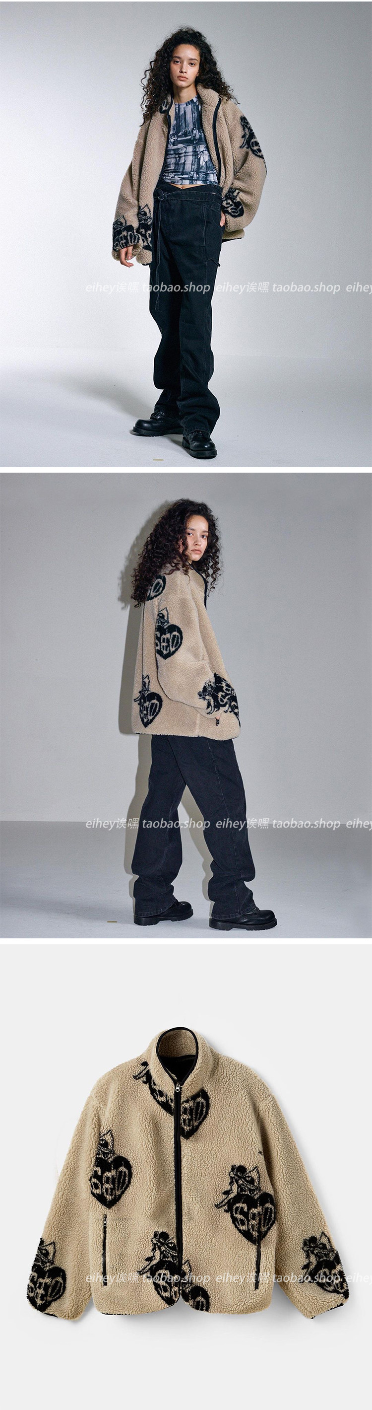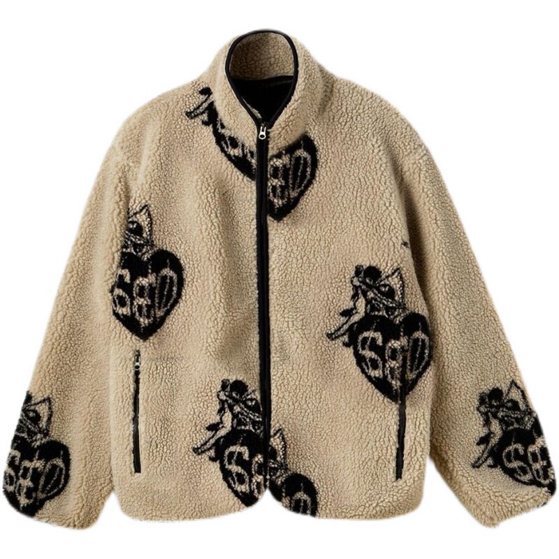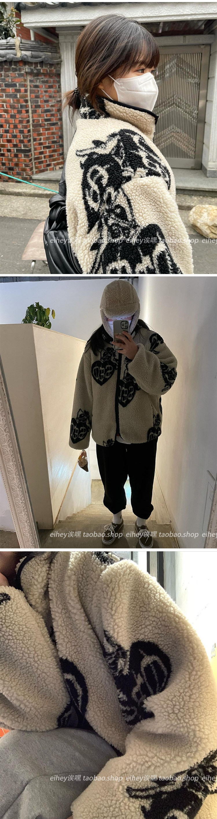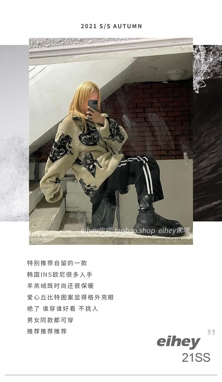 Eihey, теплые бархатные топы и куртки из ягненка в форме сердца с граффити и принтом из овечьей шерсти, повседневные короткие осенние и зимние топы и куртки для женщин