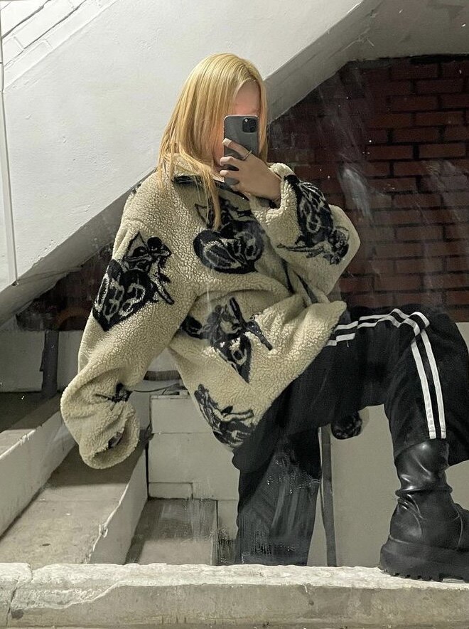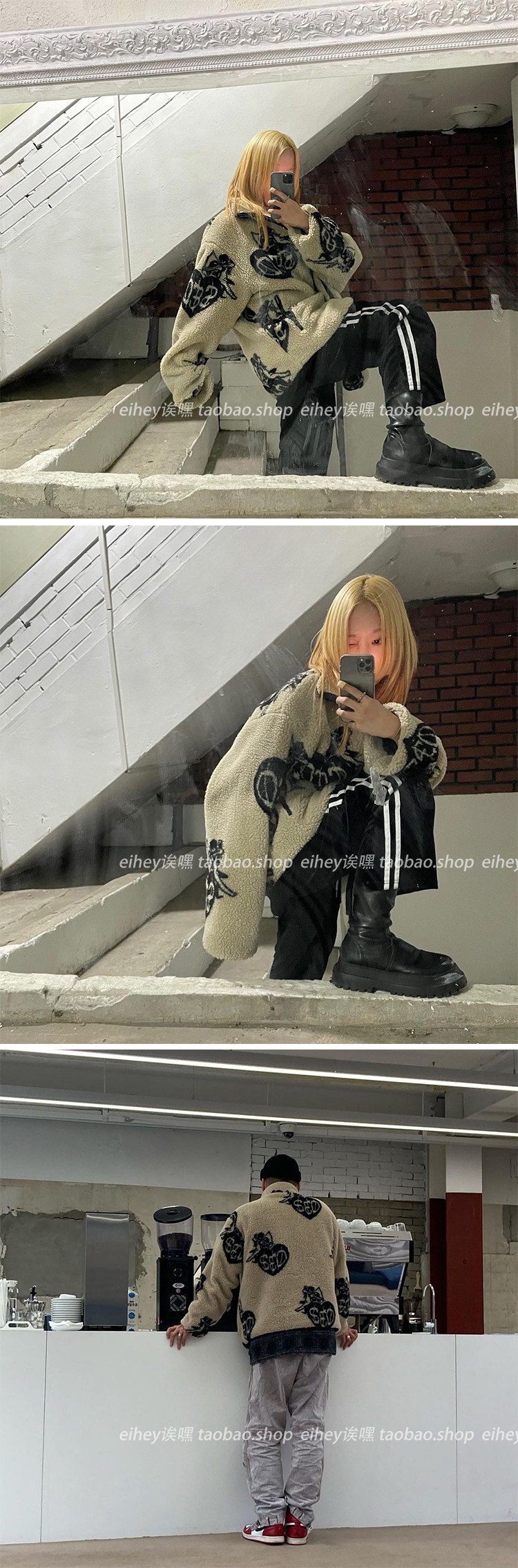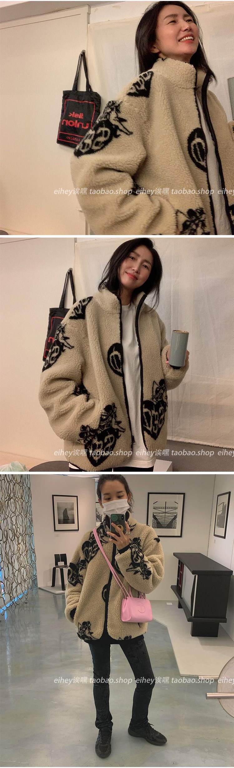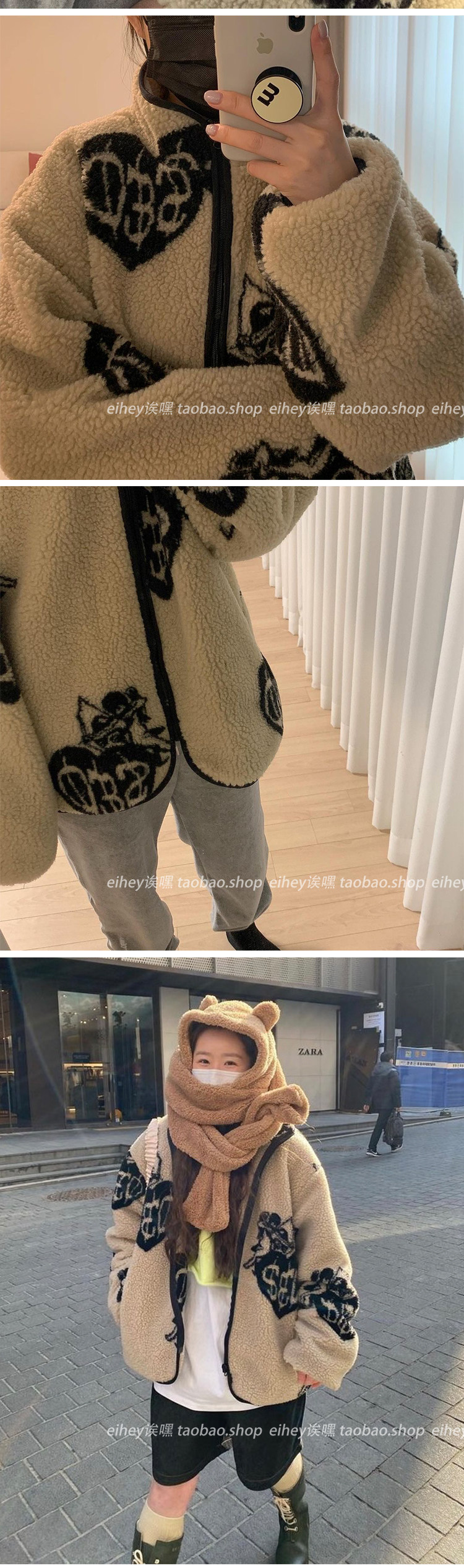 Eihey, теплые бархатные топы и куртки из ягненка в форме сердца с граффити и принтом из овечьей шерсти, повседневные короткие осенние и зимние топы и куртки для женщин