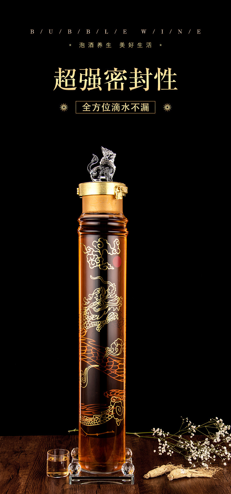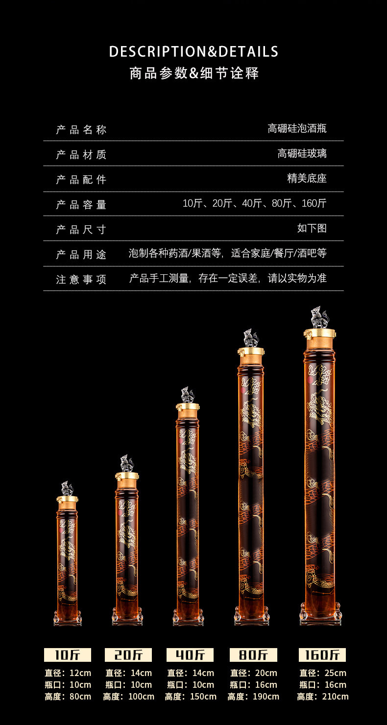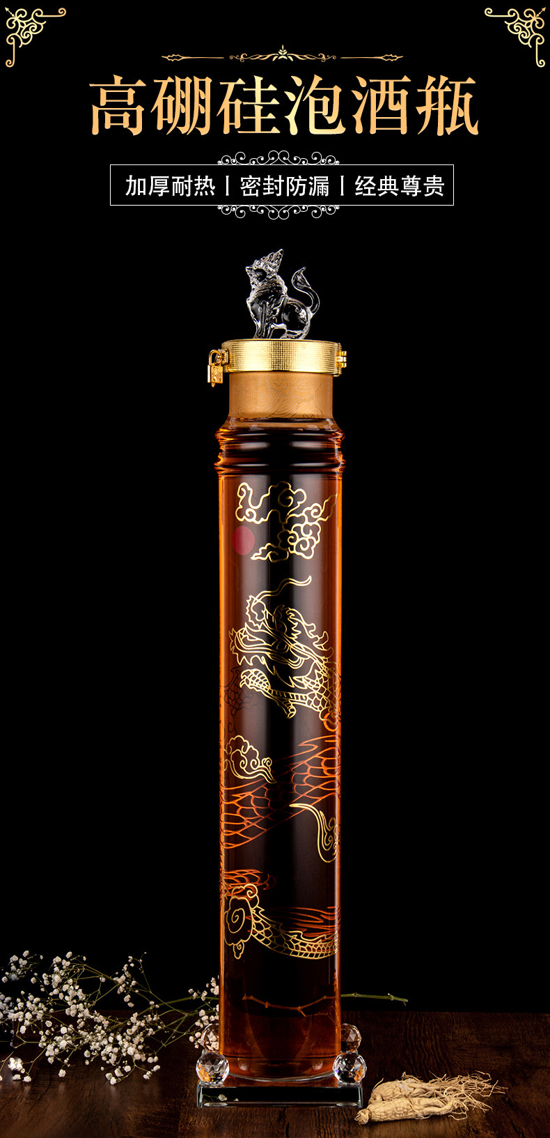 [加厚泡酒瓶大口泡参华表中华柱玻璃泡药瓶密封透明大容量泡酒瓶]