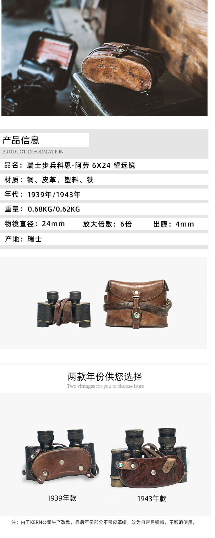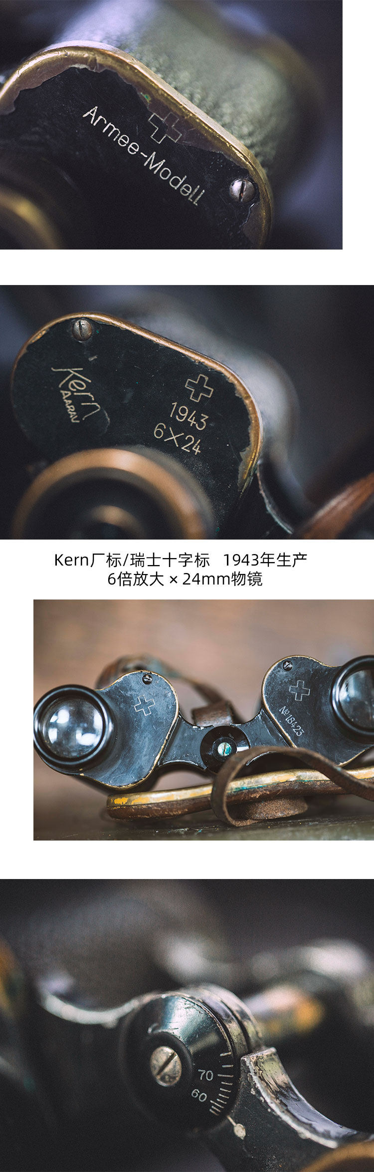 Вторая мировая война Швейцарское военное издание Телескоп Керн Медный нижний ретро Винтаж Военный антикварный коллекция HD Self -Driving Tour