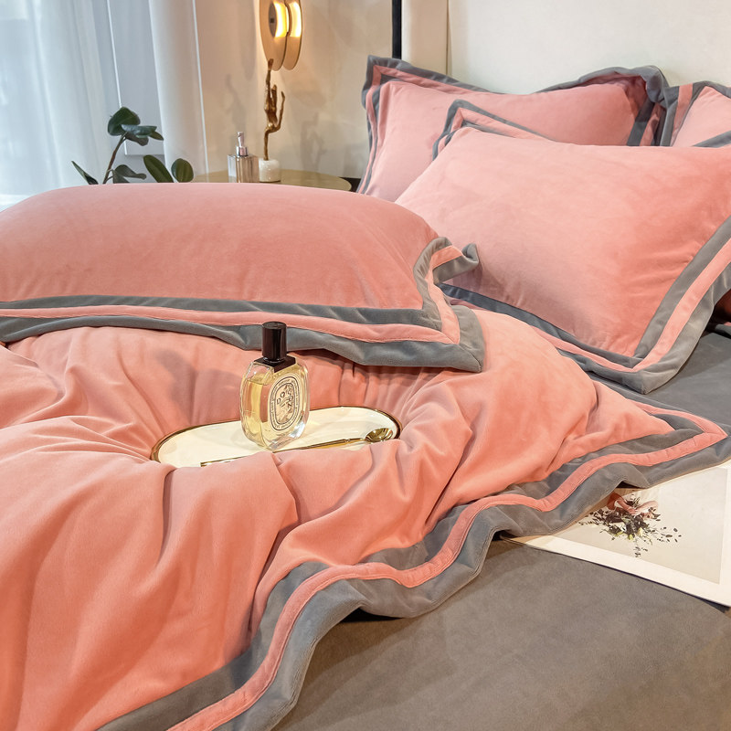 Зимний комплект, флисовый коралловый пододеяльник, фланелевая простыня, 4 предмета, увеличенная толщина