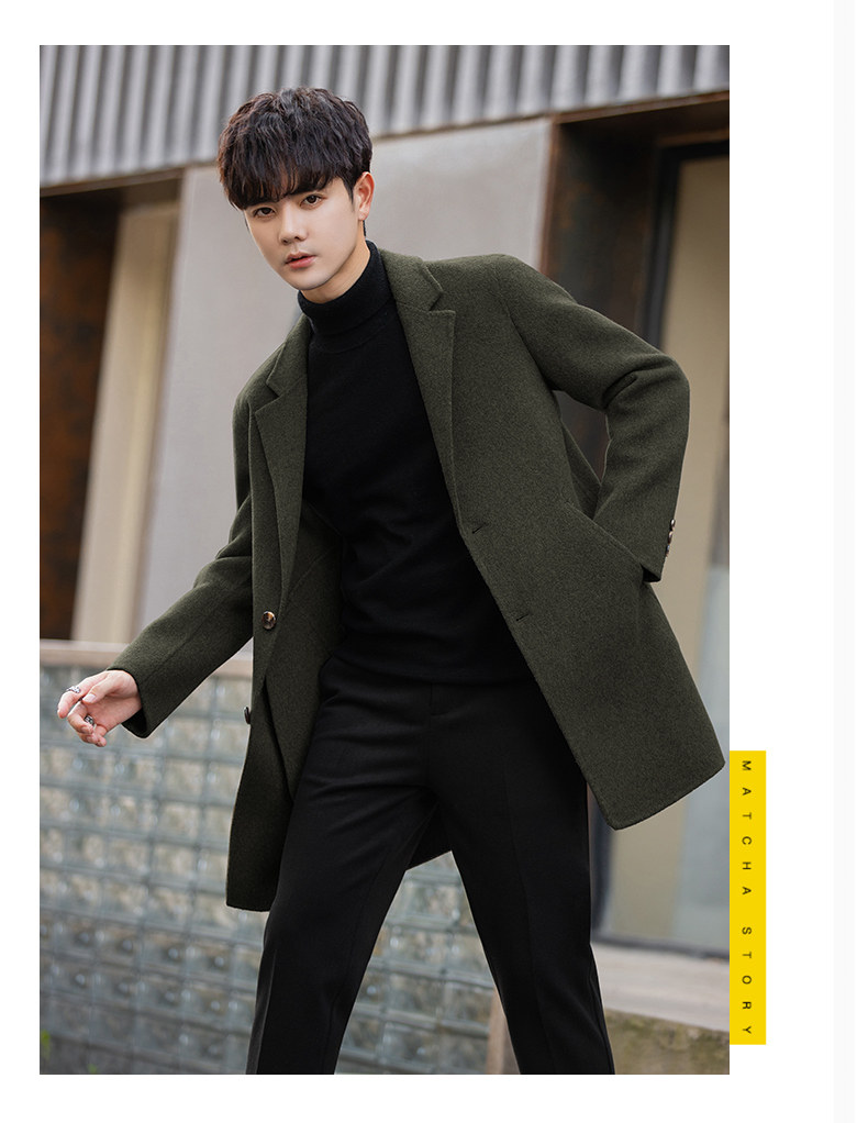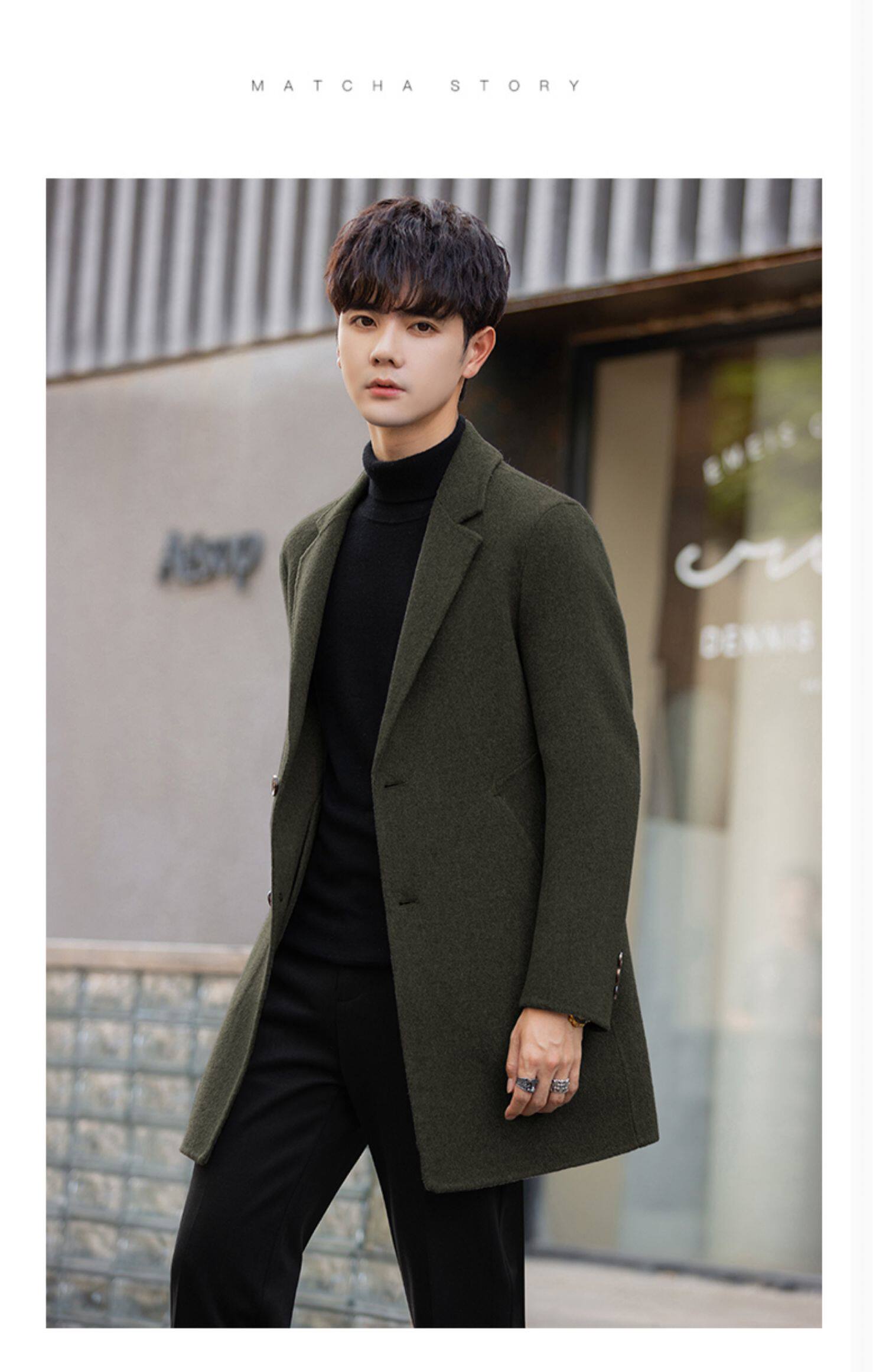 Демисезонное двусторонное мужское шерстяное пальто, цветная шерстяная бархатная куртка, в корейском стиле