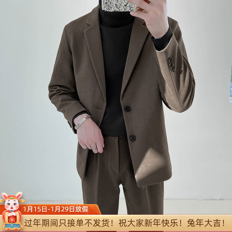 Мужской демисезонный пиджак классического кроя, трендовое шерстяное пальто, в корейском стиле, увеличенная толщина