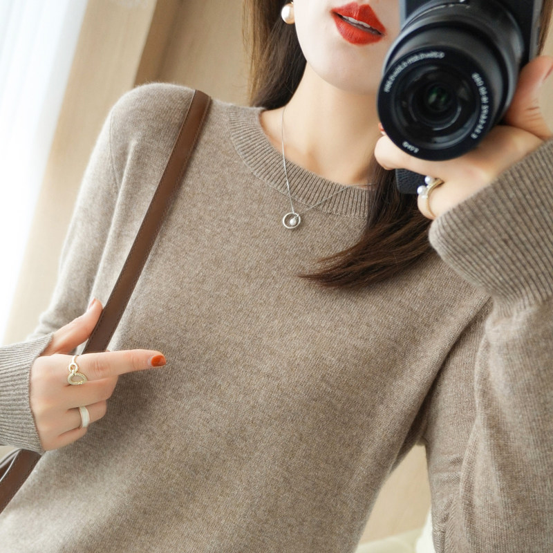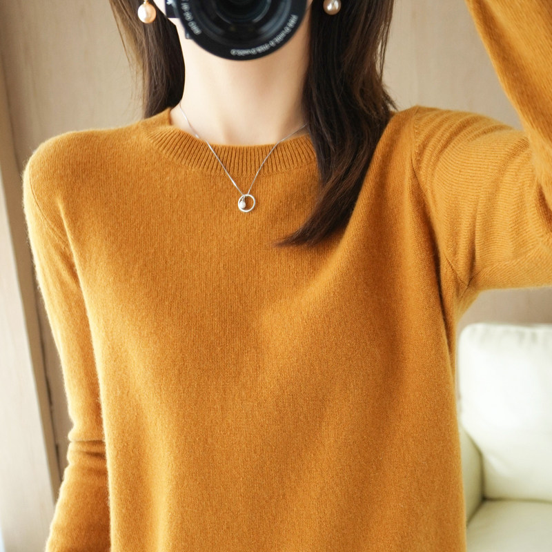 Демисезонный свитер с круглым воротником, лонгслив, кашемировая базовая рубашка, оверсайз