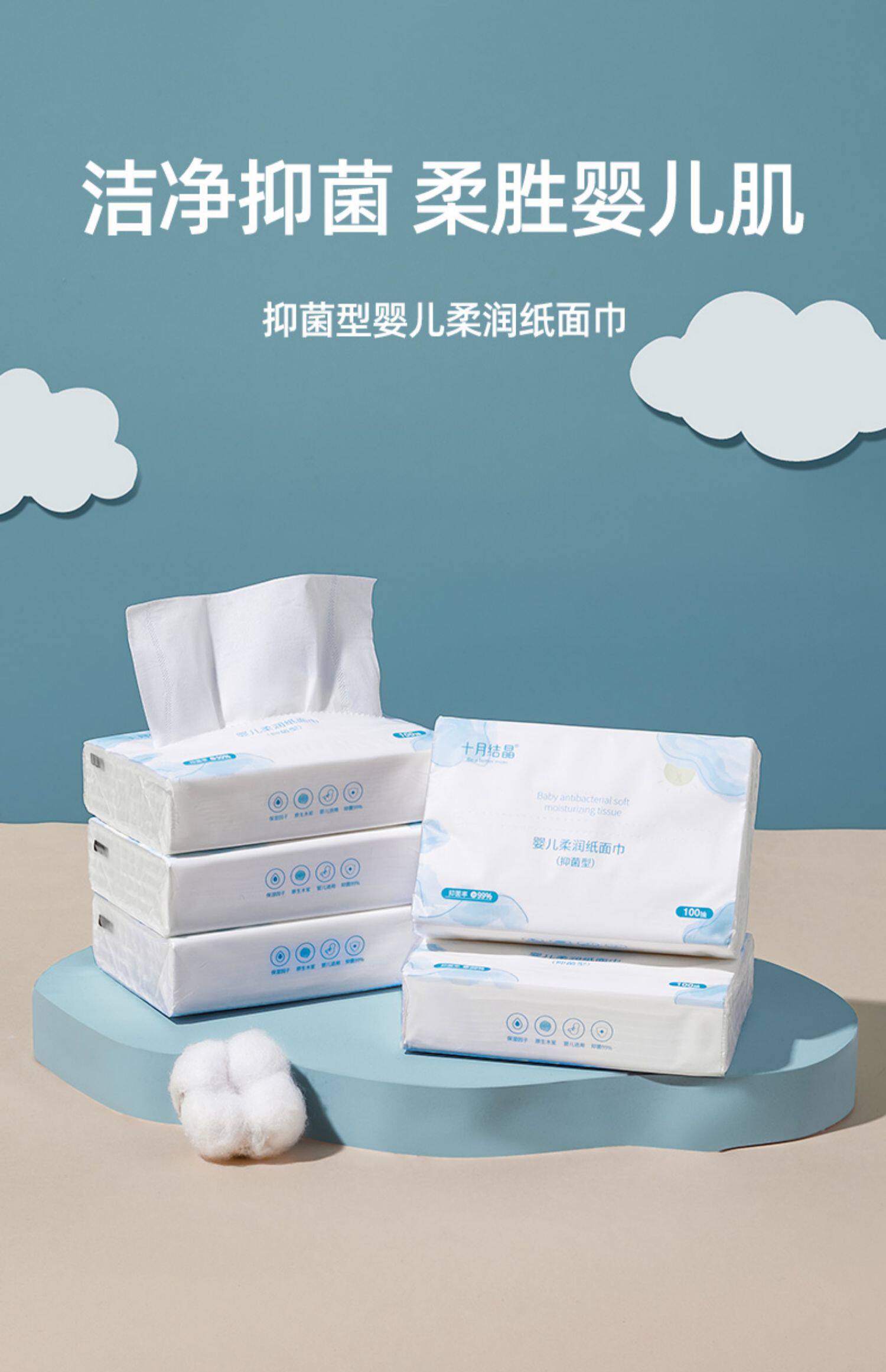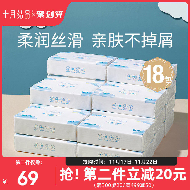 Октябрь Хрустальный младенец Юнру бумаги бумаги мягкая бумага новорожденная детская кремовая бумага мягкое бумажное полотенце 100 насос*18 упаковок