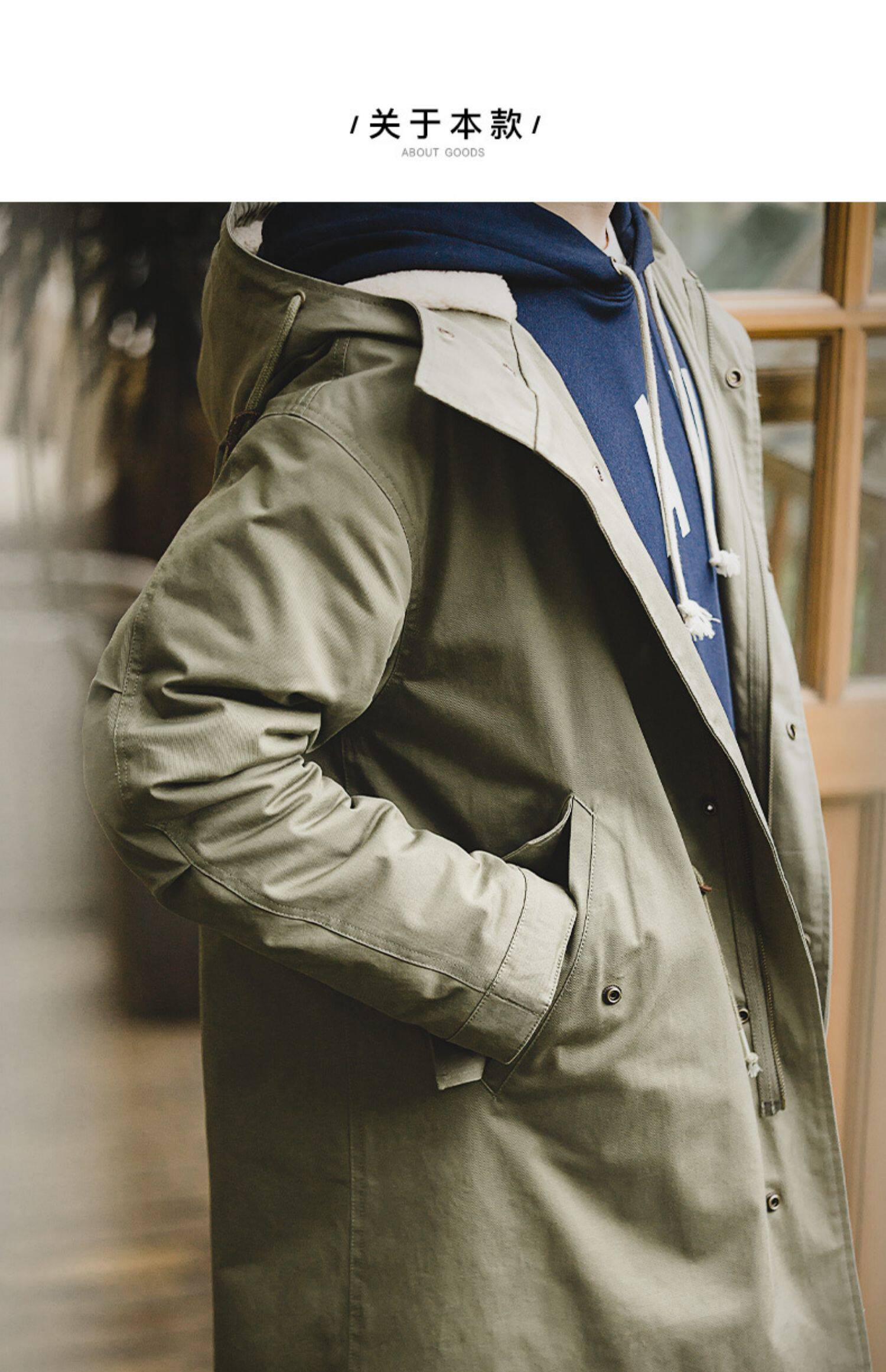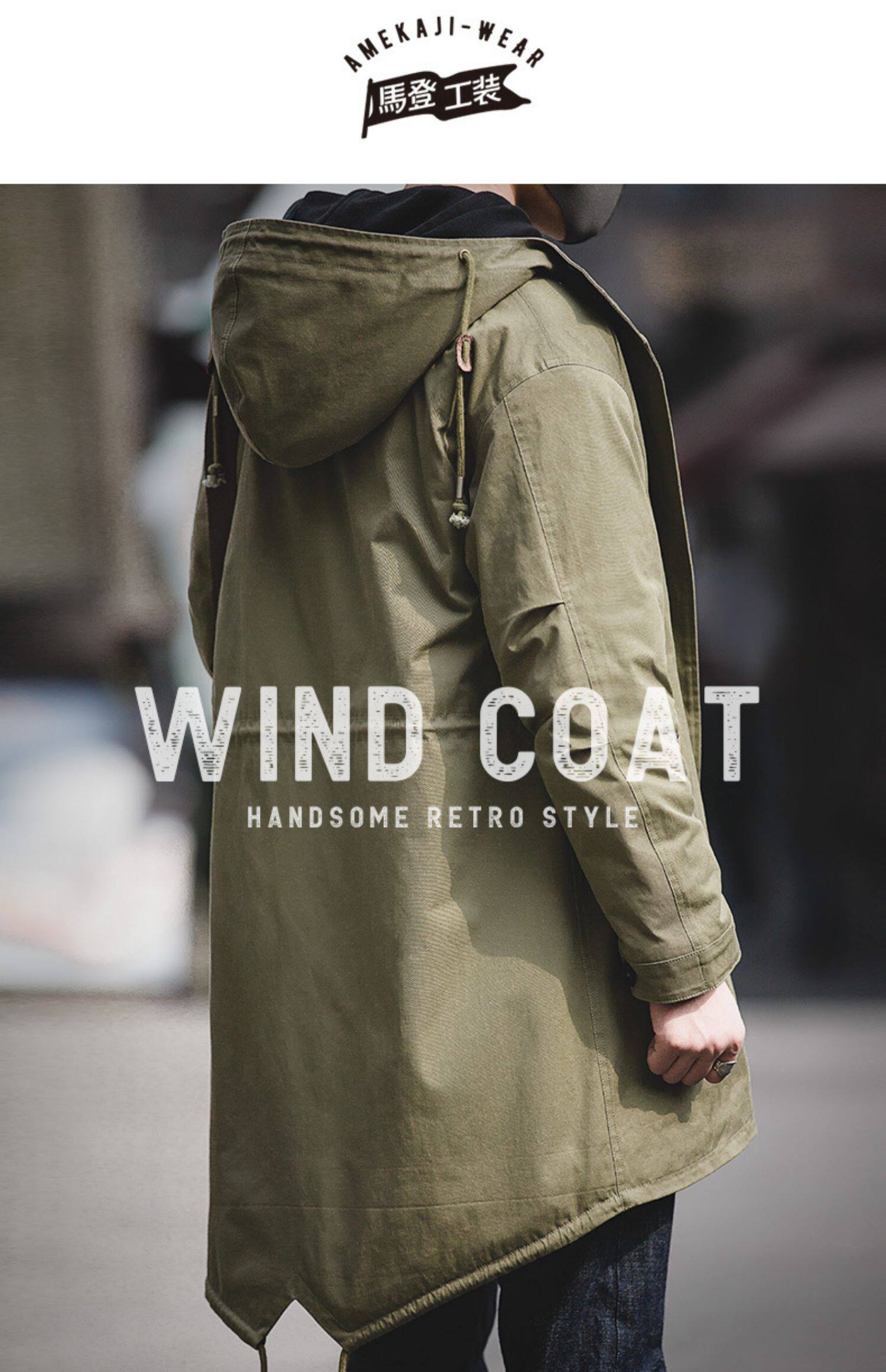 Ретро куртка, длинная толстовка с капюшоном, демисезонное пальто, в американском стиле, средней длины