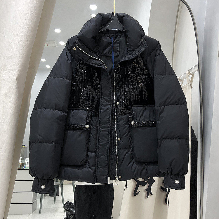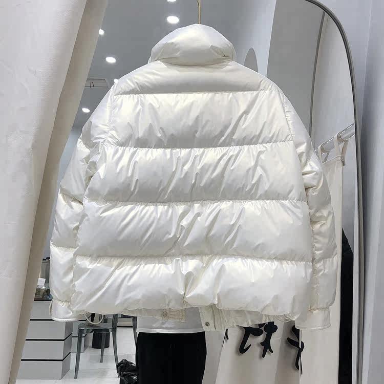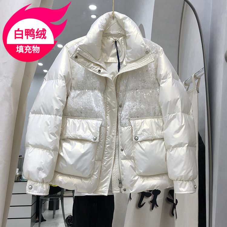 Пуховик, бархатная куртка, 2021 года, оверсайз, свободный крой, по фигуре, в стиле Шанель, белая одежда, утиный пух