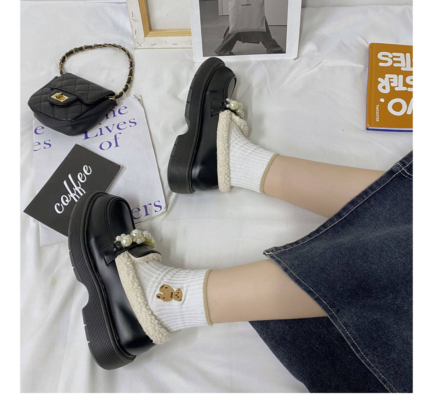 Tide, утепленная демисезонная обувь для кожаной обуви, лоферы в английском стиле на платформе, коллекция 2021, в британском стиле