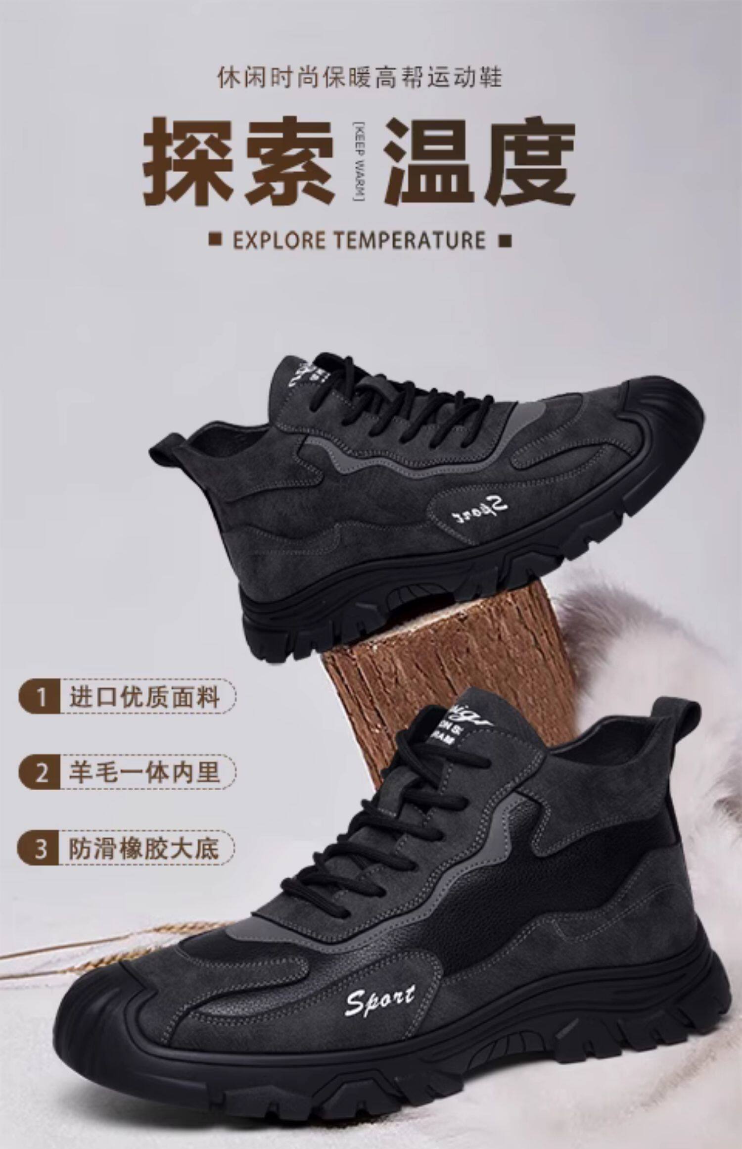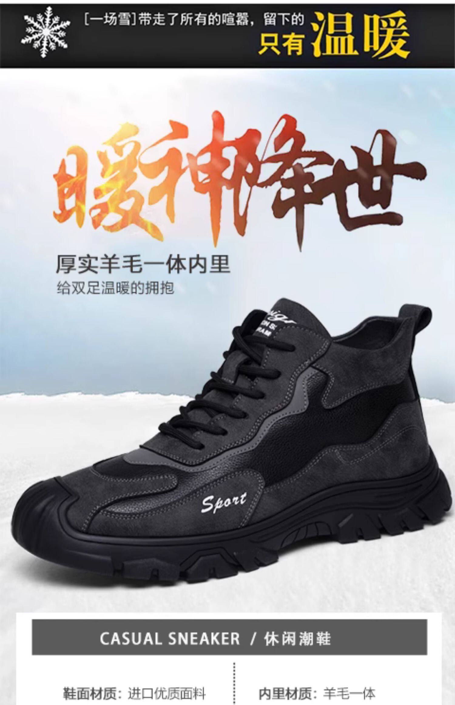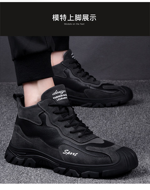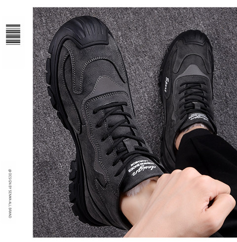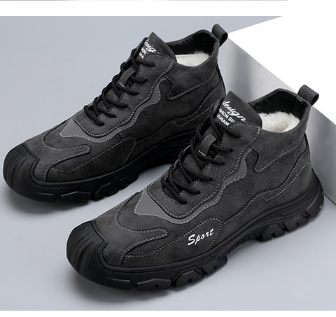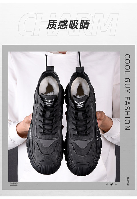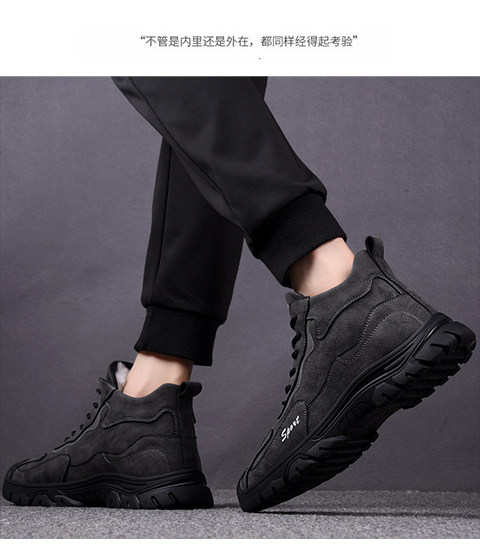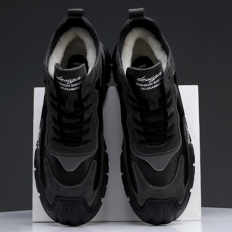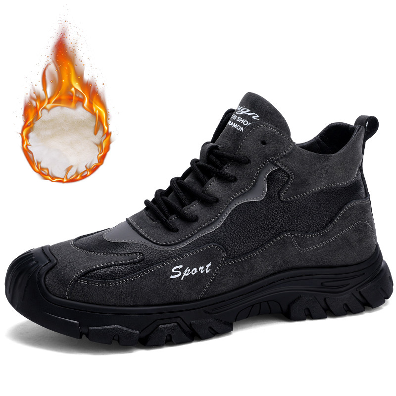 Хлопковая мужская зимняя меховая универсальная повседневная спортивная мужская обувь на толстой подошве и бархатная теплая нескользящая шерстяная мужская обувь с высоким берцем
