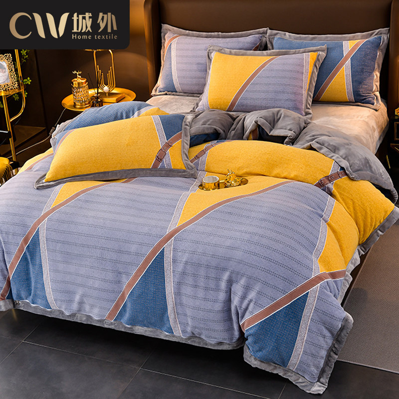 Зимний коралловый комплект, двусторонний флисовый пододеяльник, 4 предмета, постельные принадлежности, коллекция 2021