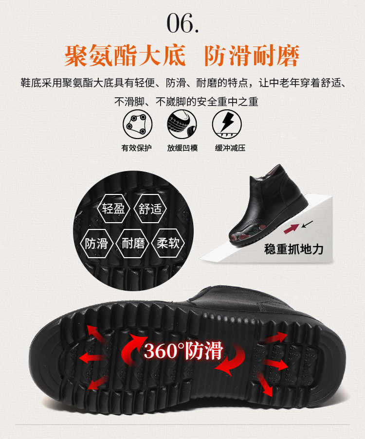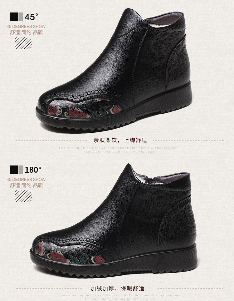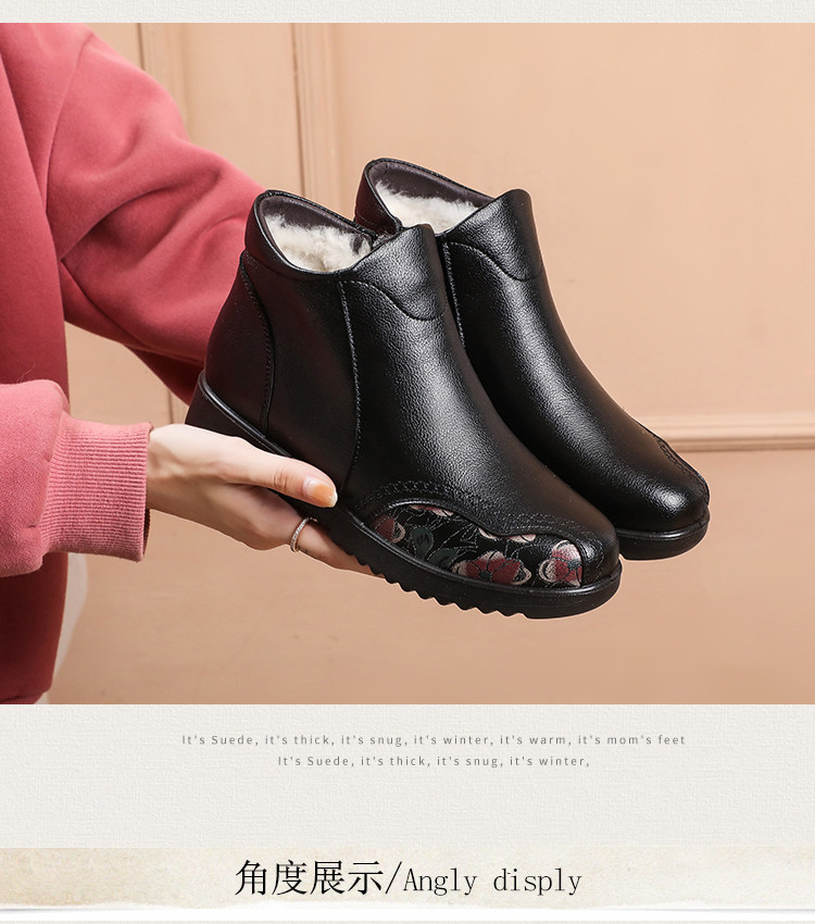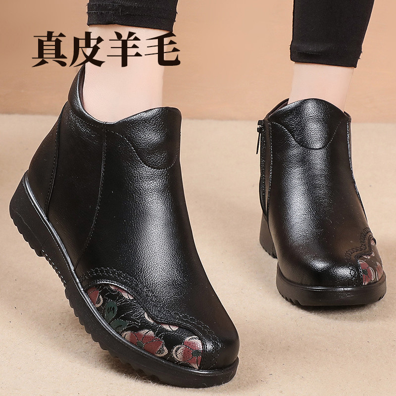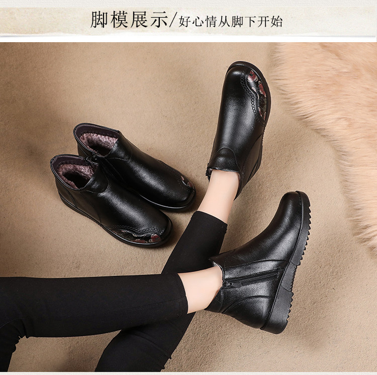 Зимние флисовые удерживающие тепло нескользящие короткие сапоги для матери для кожаной обуви, из натуральной кожи, мягкая подошва, для среднего возраста