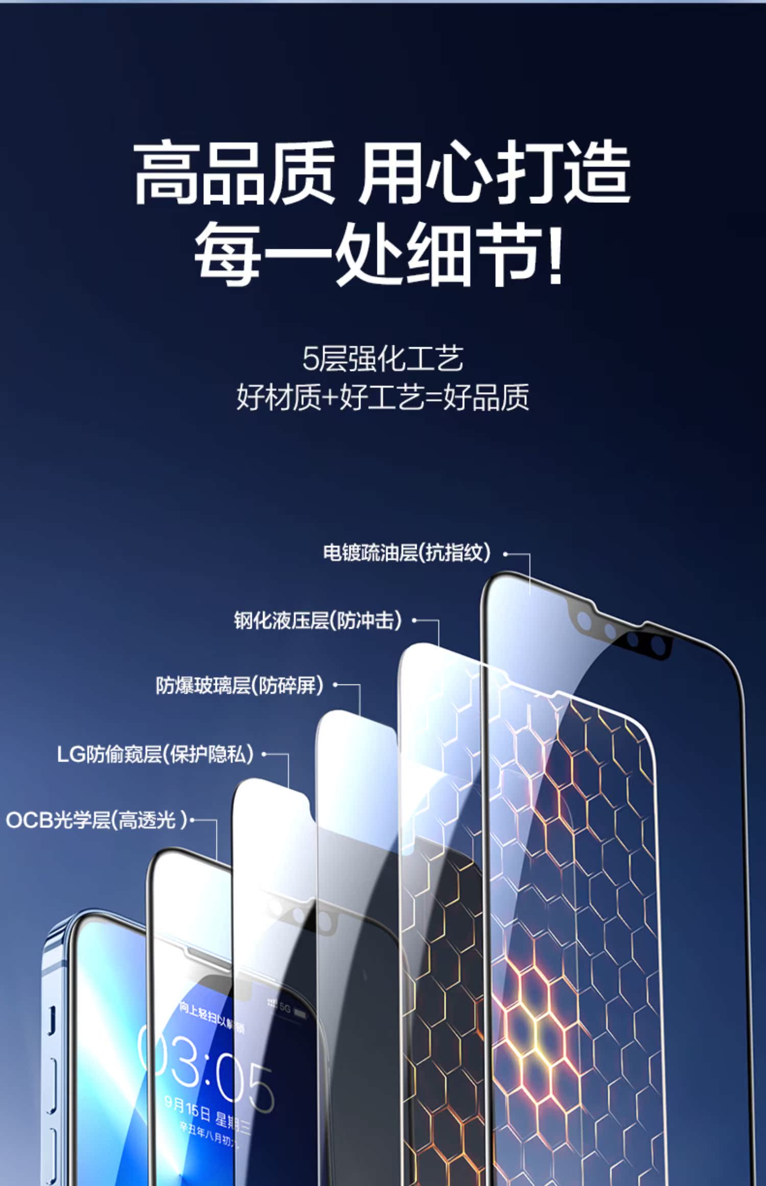 - Полное покрытие экрана [360 ° вверх, вниз, влево и правое анти -первое] 1 штука съемных артефактов