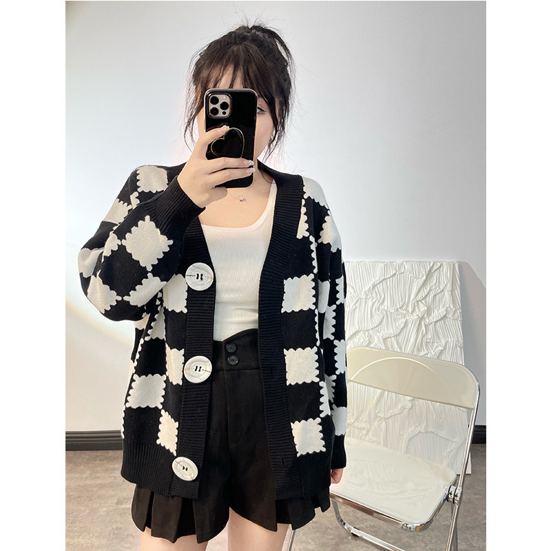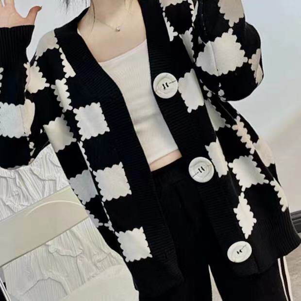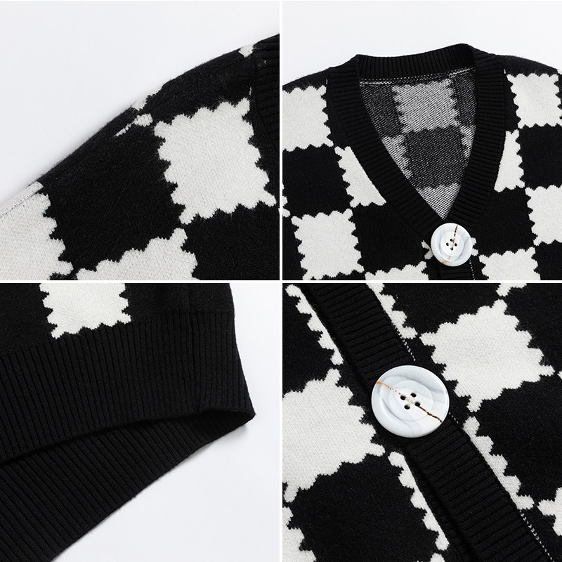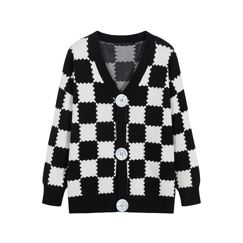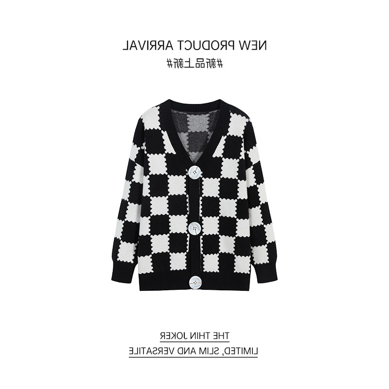 Демисезонные шахматы, ретро трикотажный лонгслив, кардиган, свитер, куртка