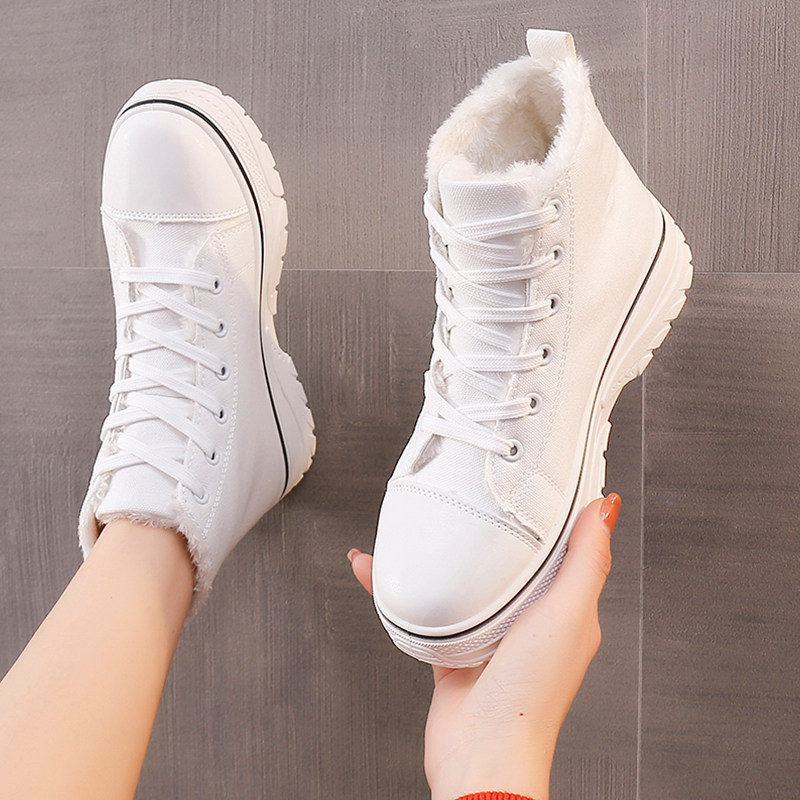 Универсальная флисовая нескользящая тканевая демисезонная белая обувь на платформе, кроссовки, 2021 года, в корейском стиле, для бега