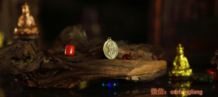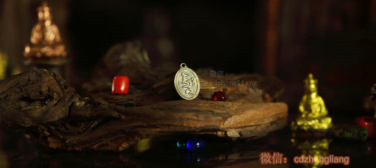 Семенные персонажи Гуаньян Бодхисаттва Амитабха на задней части пестика Кинга Конга сделана бронза, и ее можно повесить на бусинках.