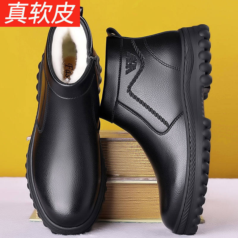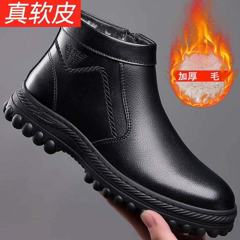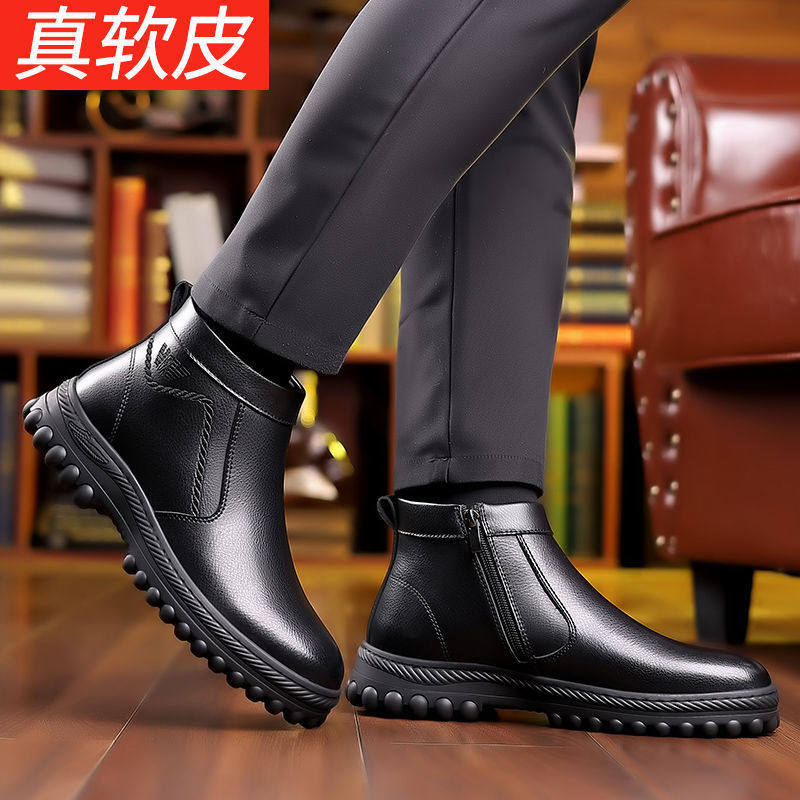 Утепленная удерживающая тепло обувь, нескользящие износостойкие высокие сапоги для отдыха для кожаной обуви, коллекция 2023, для среднего возраста