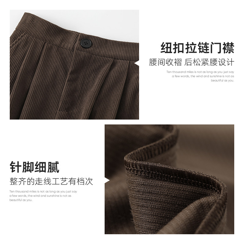 Кофейная вельветовая демисезонная ретро длинная юбка, А-силуэт, длина миди