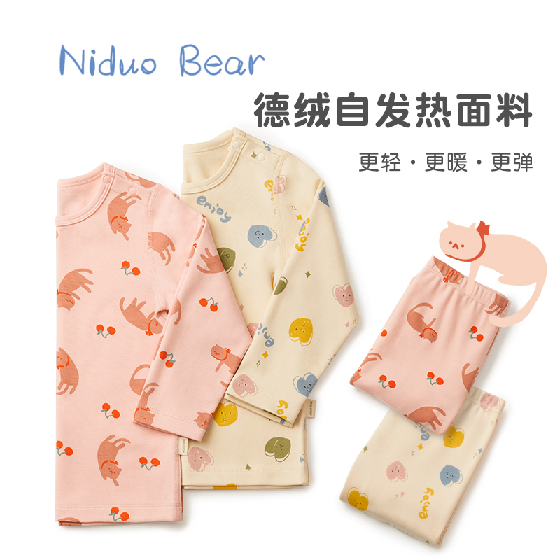 Детское бархатное удерживающее тепло зимнее нижнее белье, утепленное милое термобелье, комплект