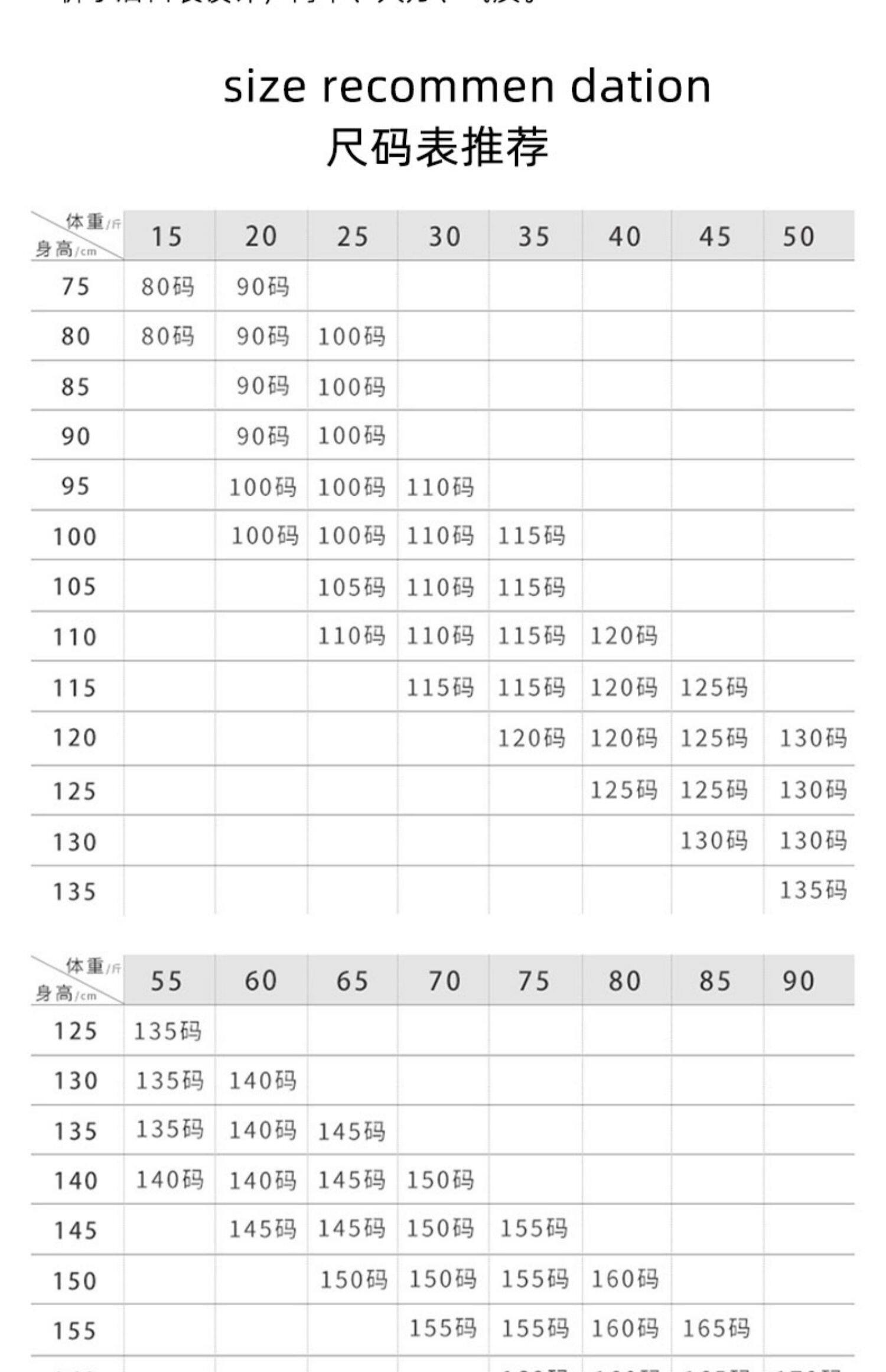 Справочная высота: Высота 90 см 85-90 вес 18-23 кот, Высота 100 см 95-100 вес 23-25 ​​кот, Высота 105 см 100-105 Вес 25-28 Catties, Высота 110 см 105-110 весит 25-30 кот, Высота 115 см 110-115 Вес 30-35 Catties, Высота 120 см 115-120 Вес 35-40 Catties, Высота 125 см 120-125 Вес 40-45 Catties, Высота 130 см 125-130 вес 45-50 кот, Высота 135 см 130-135 Вес 50-55 Catties, Высота 140 см 135-140 вес 55-60 кот, Высота 145 см 140-145 вес 60-65 кот, Высота 150 см 145-150 весит 65-70 кот, Высота 155 см 150-155 вес 70-75 Catties, Высота 160 см 155-160 Вес 75-80 Catties, Высота 165 см 160-165 Вес 80-85 Catties, Высота 170 см 165-170 Вес 85-90 Catties
